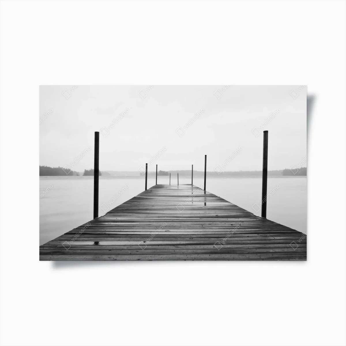 Plakat Mglisty pomost nad jeziorem w monochromie