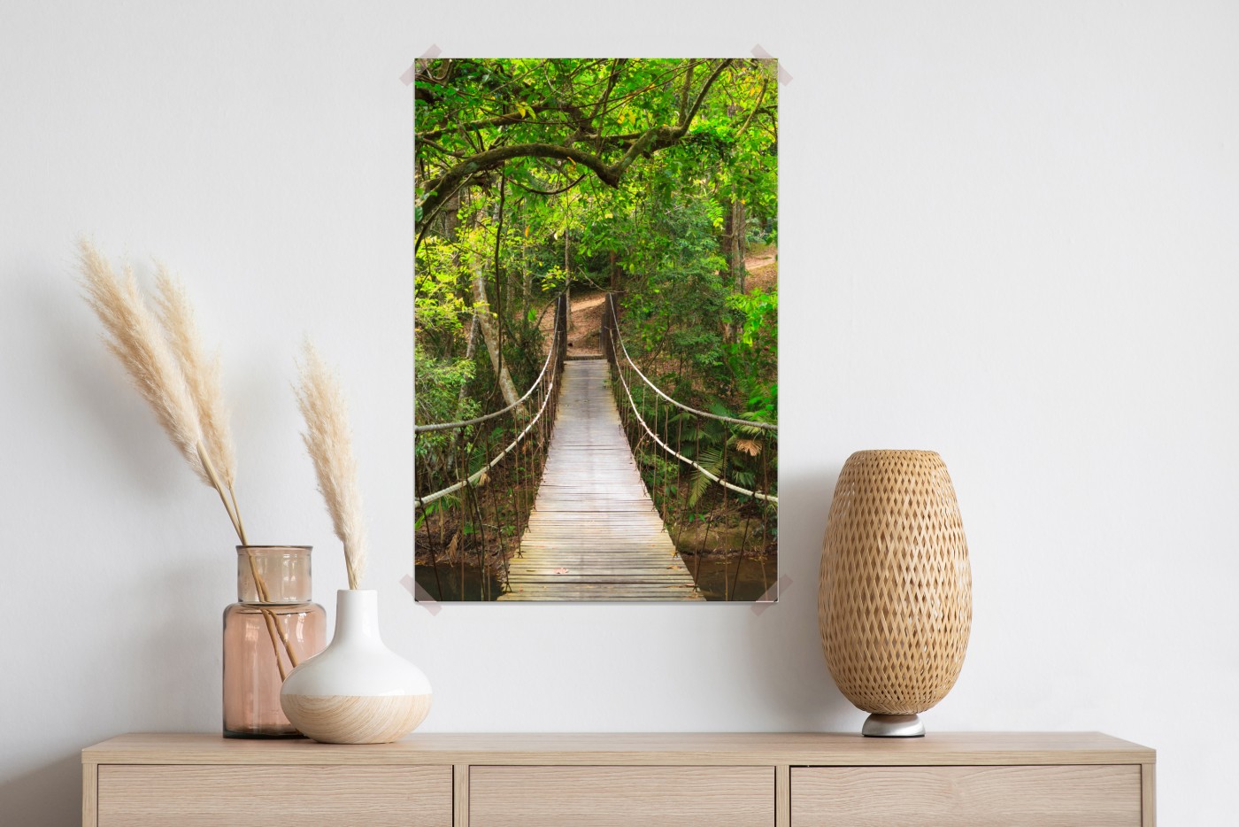 Plakat wiszący drewniany most w zielonym lesie – Wallissimo®
