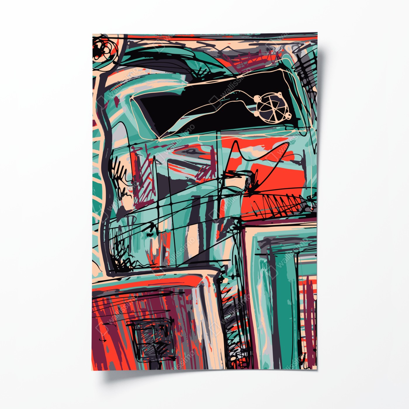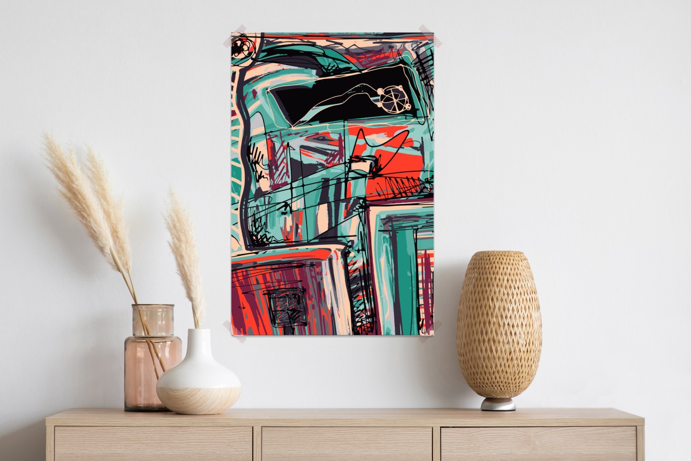 Plakat Turkusowo-koralowa abstrakcyjna kompozycja