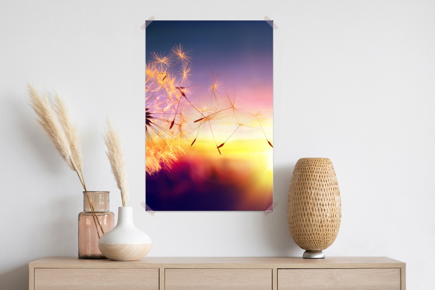 Plakat złoty mniszek przy zachodzie słońca – Wallissimo®