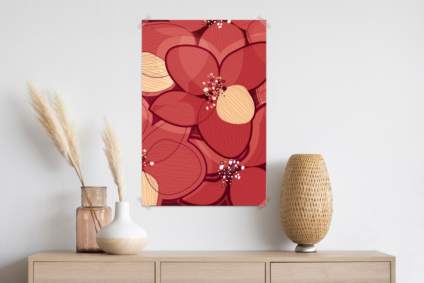 Plakat Czerwony kwiatowy wzór z beżowymi środkami
