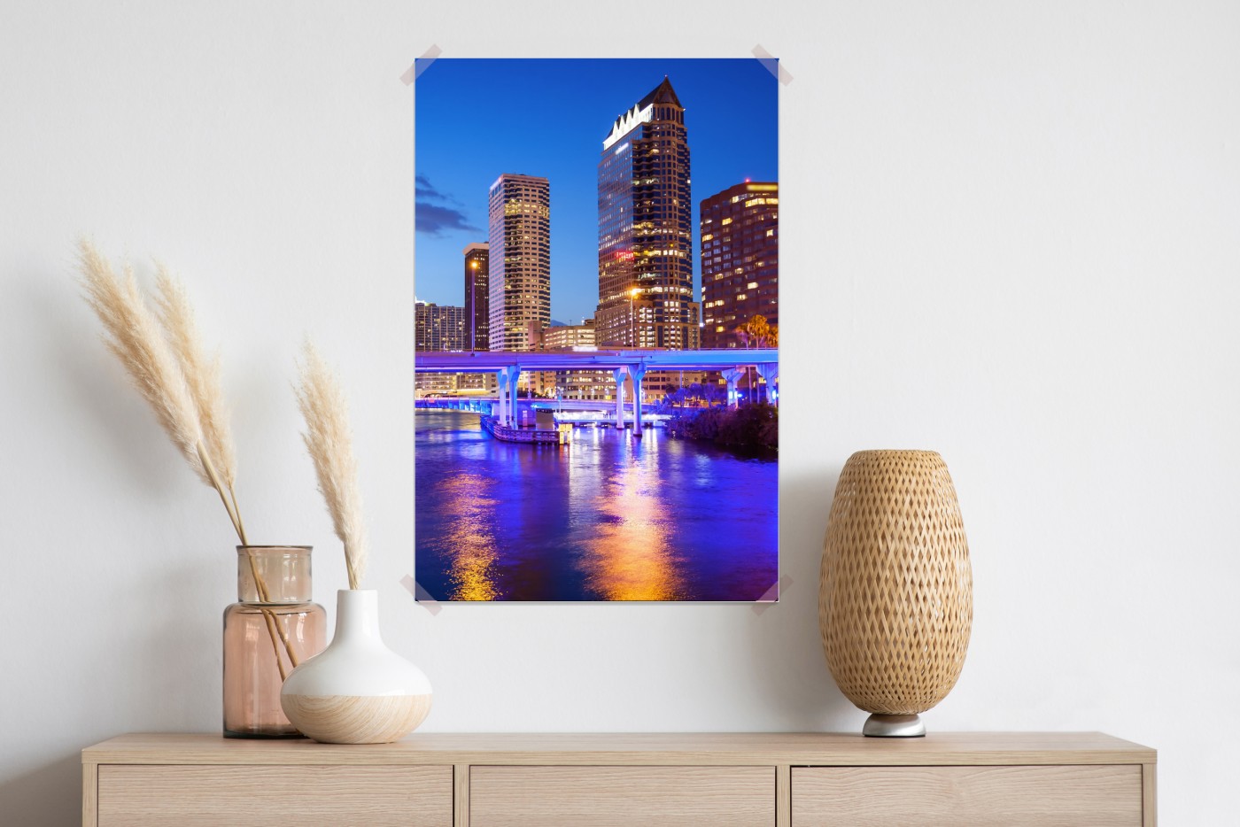 Ożyw swoje wnętrze dynamiczną nocną panoramą Tampa z odbiciami świateł na rzece, idealną do nowoczesnych przestrzeni.WięcejMniej