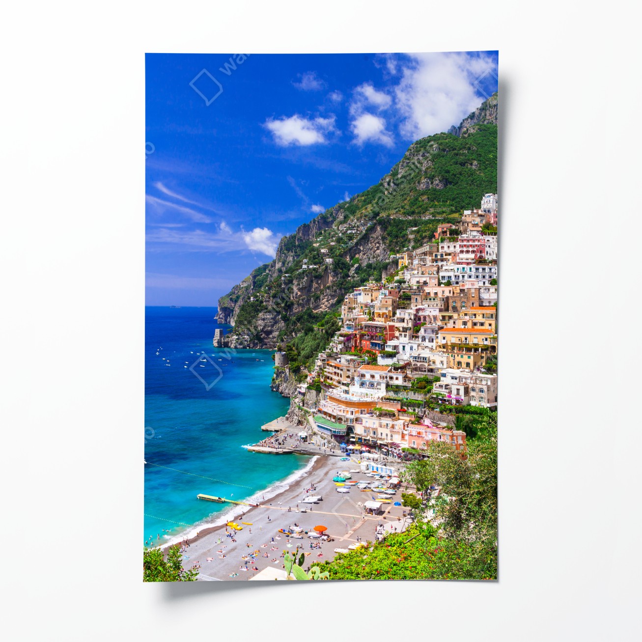 Plakat Słoneczna panorama Positano na Wybrzeżu Amalfi