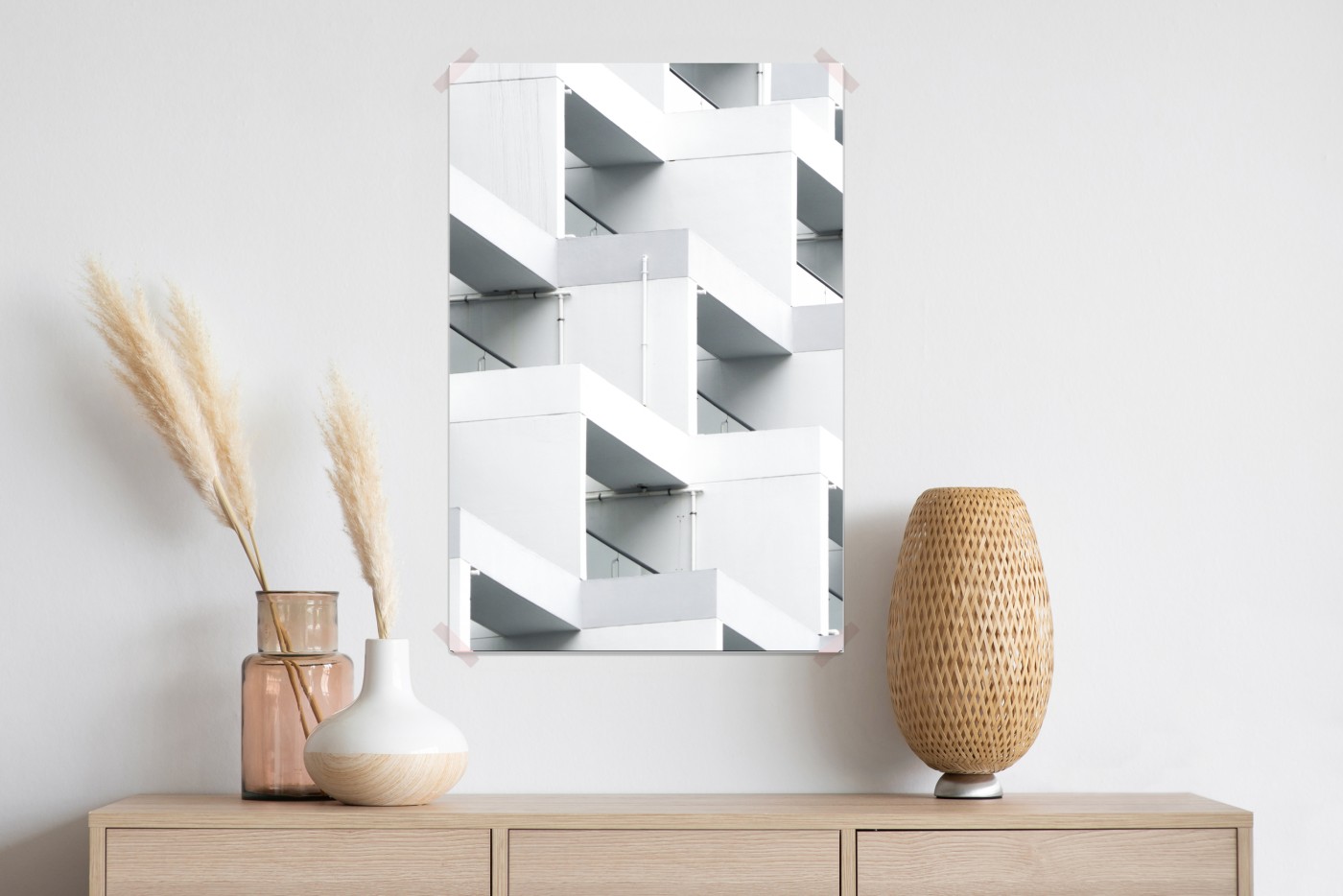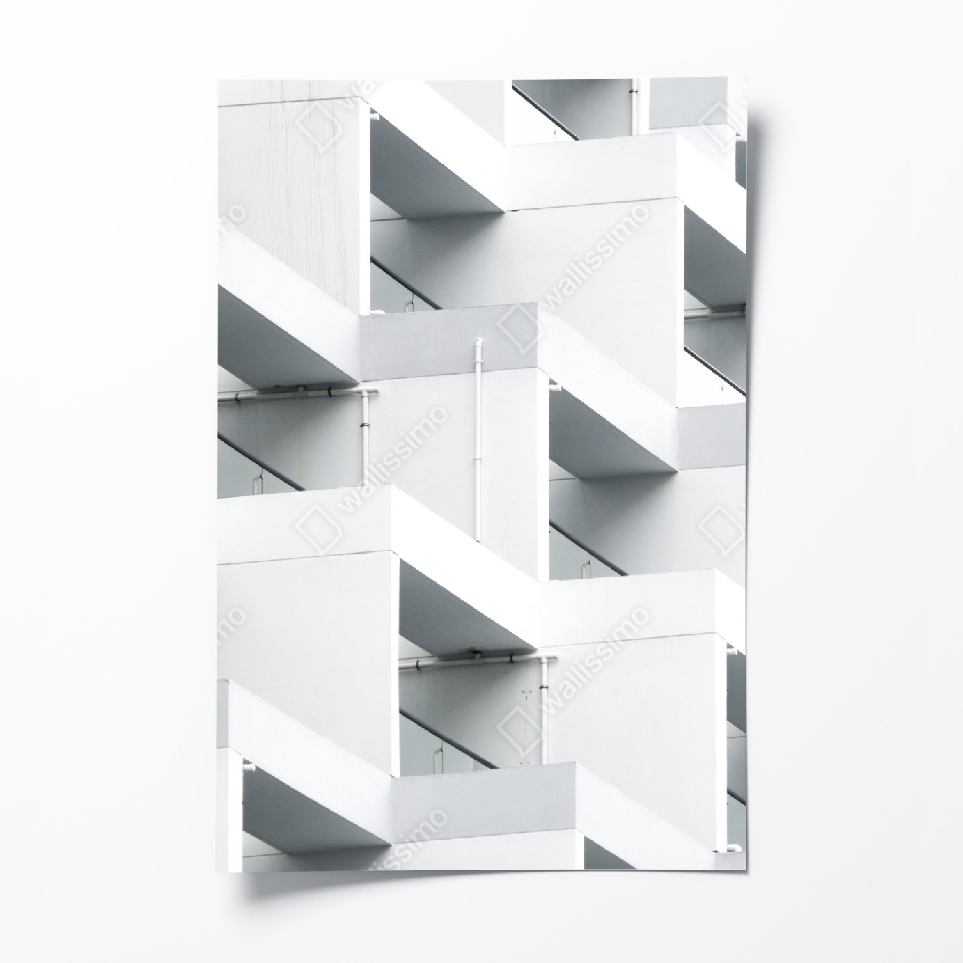 Plakat Biała betonowa fasada w geometrycznym wzorze
