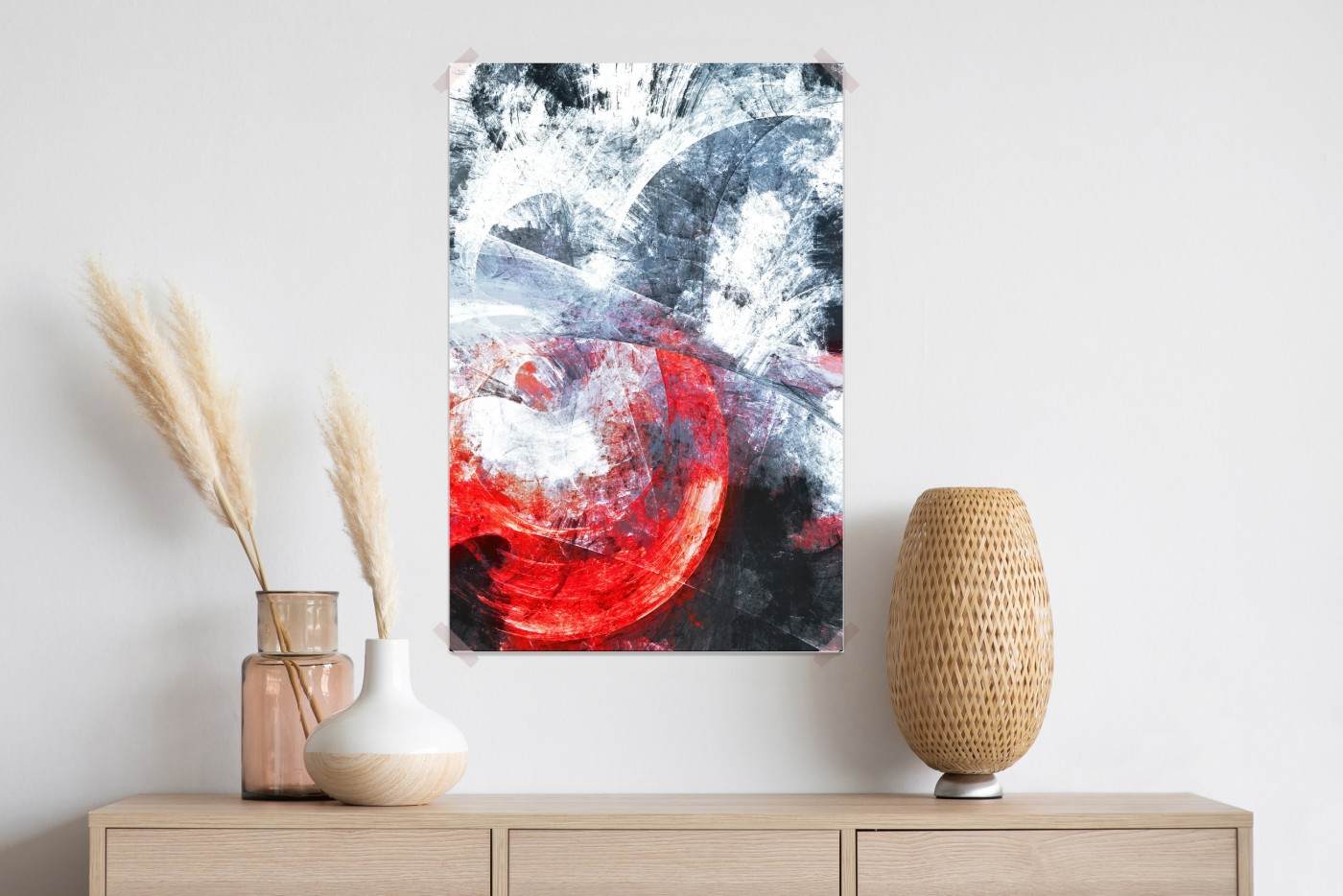 Plakat Dynamiczna czerwona i biała abstrakcyjna kompozycja