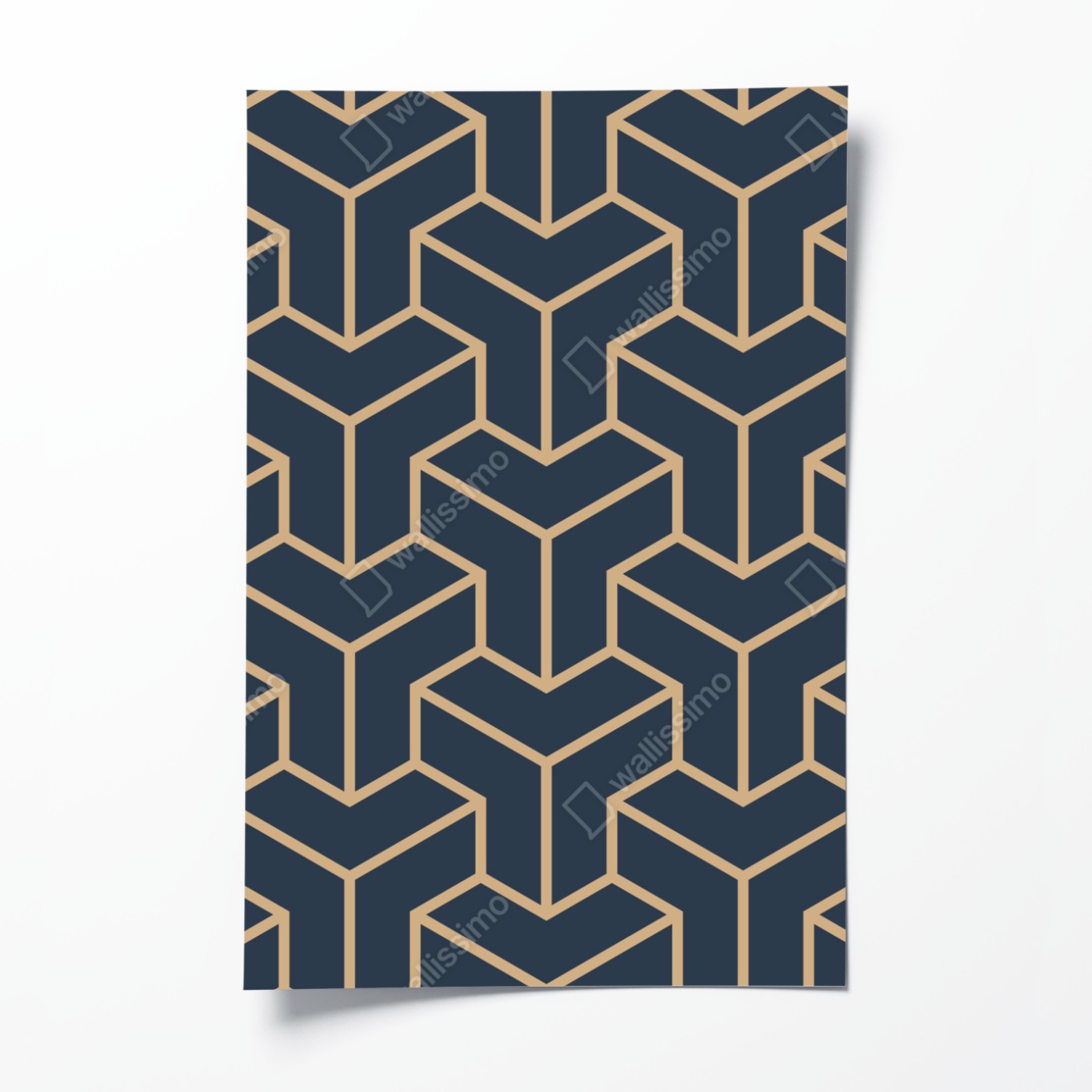 Plakat Granatowy geometryczny wzór sześcianów
