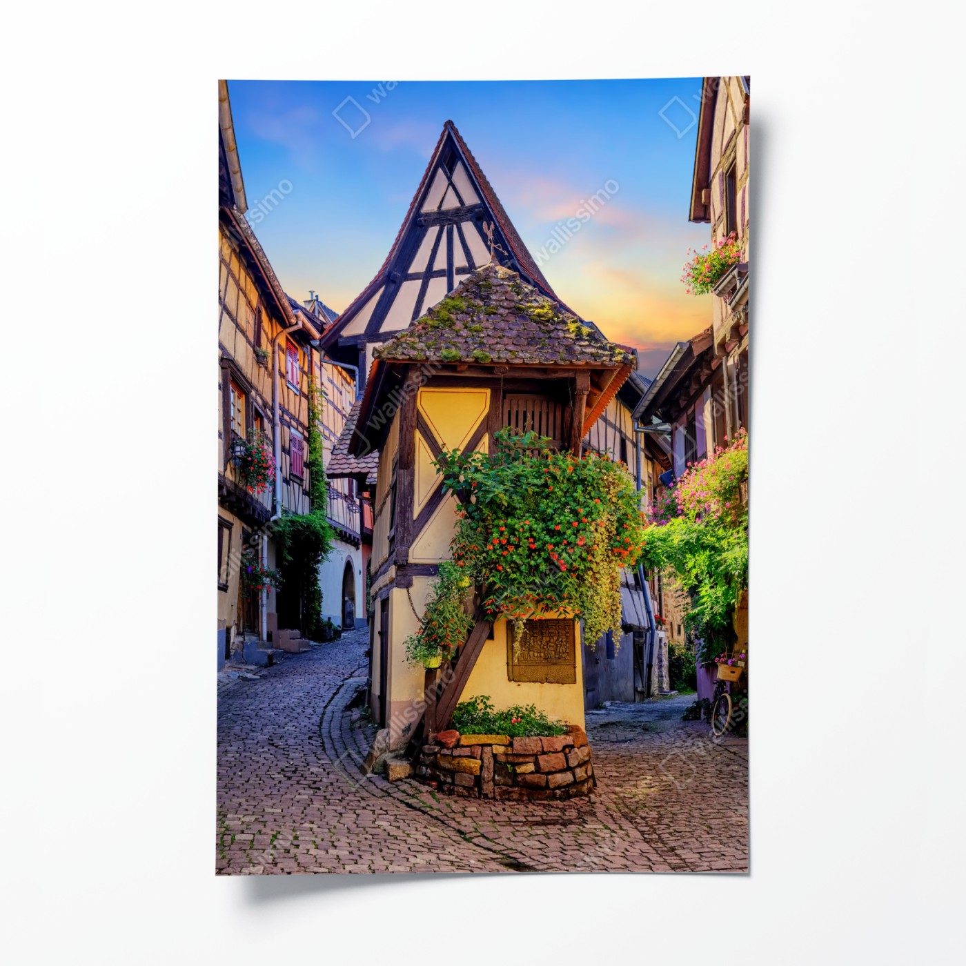Plakat urokliwa ulica domów szachulcowych w Eguisheim, Alsacja – Wallissimo®