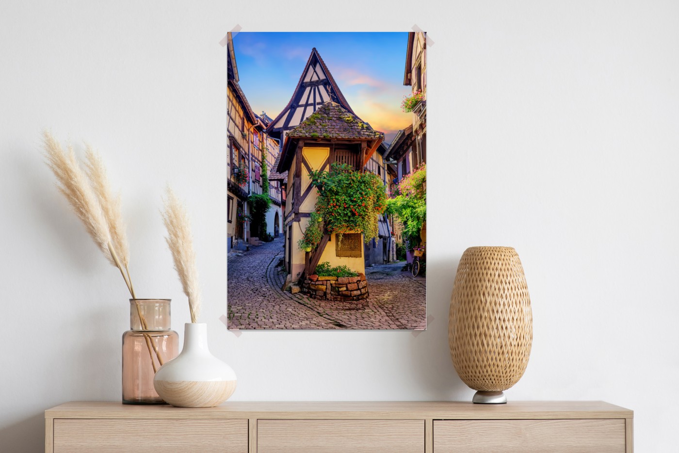 Plakat Urokliwa ulica domów szachulcowych w Eguisheim, Alsacja