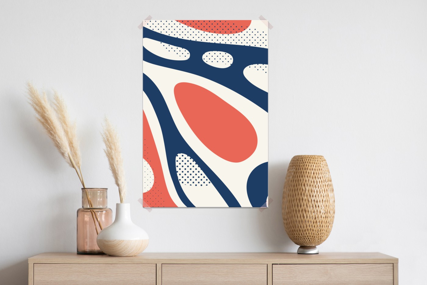 Plakat Retro koralowo-granatowy abstrakcyjny wzór