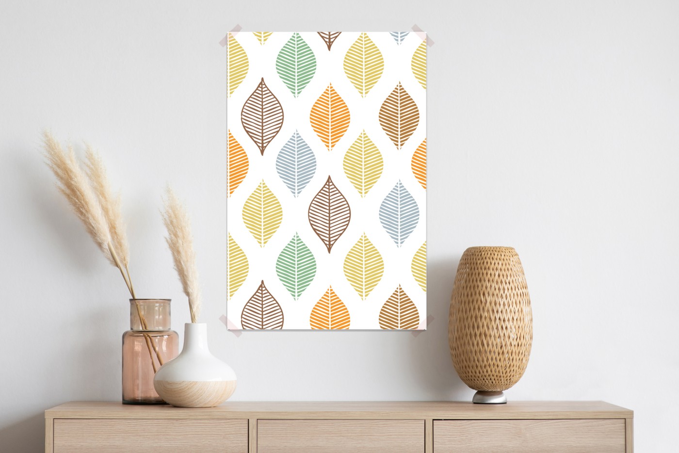 Plakat Pastelowy wzór liści na ścianę