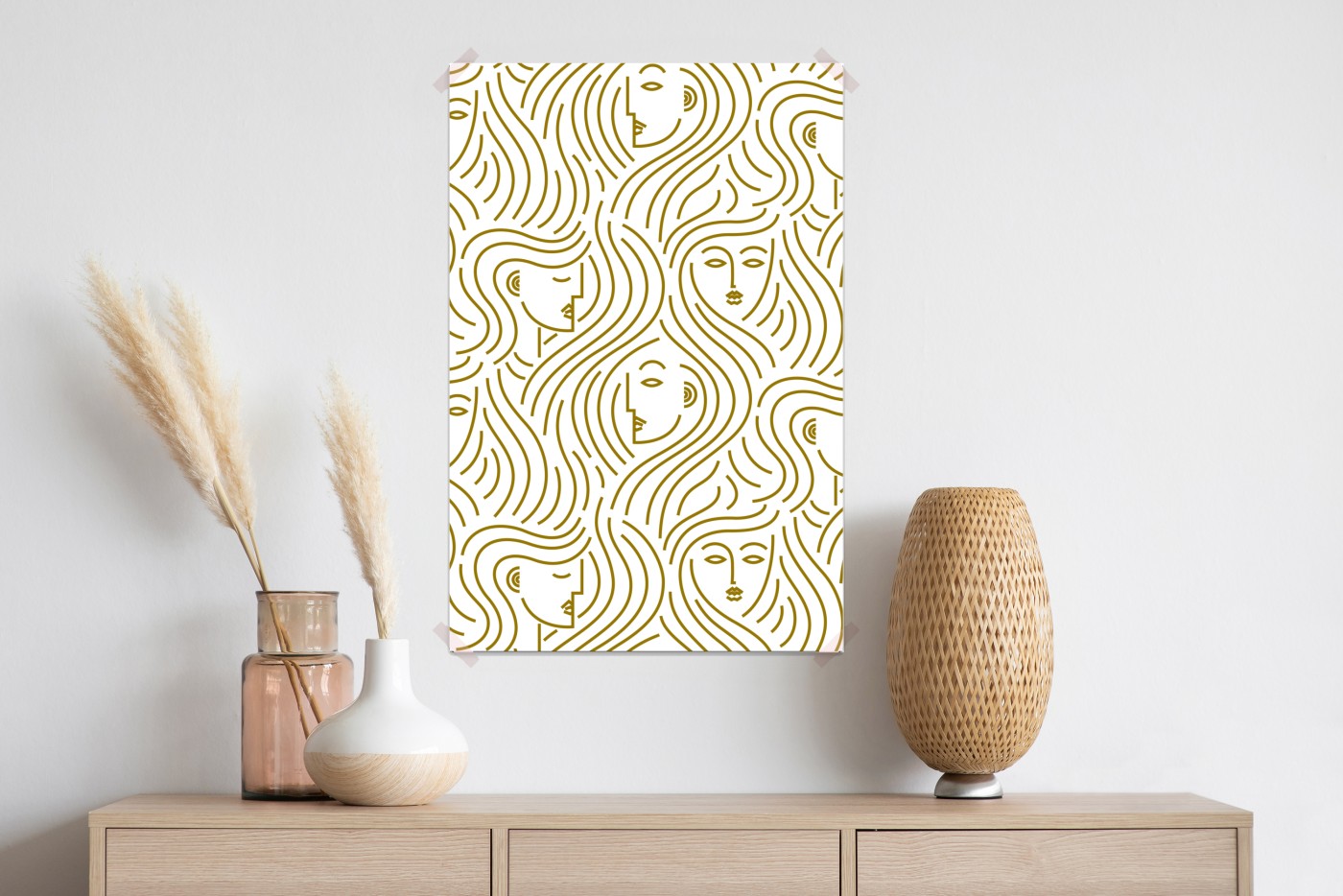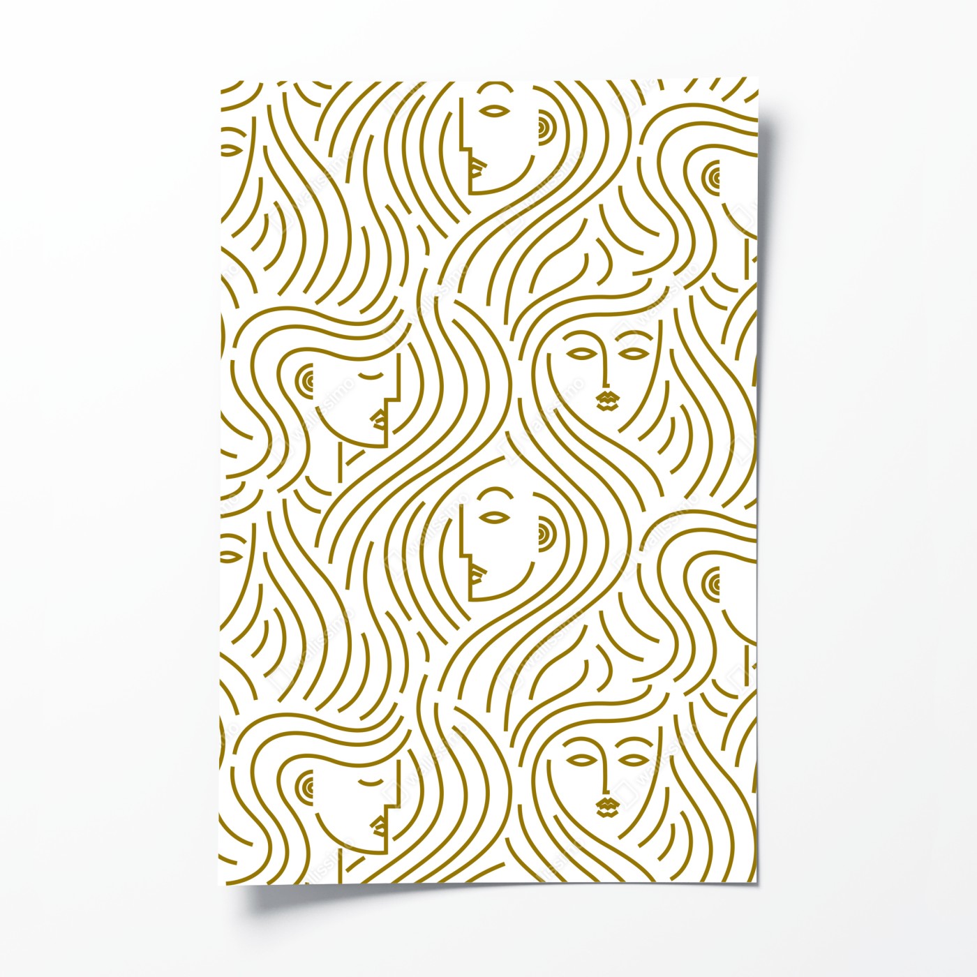 Plakat Złote fale i abstrakcyjne twarze bezszwowy wzór