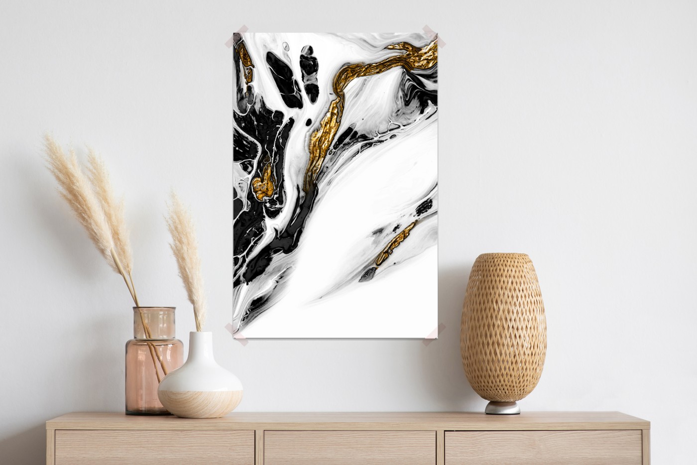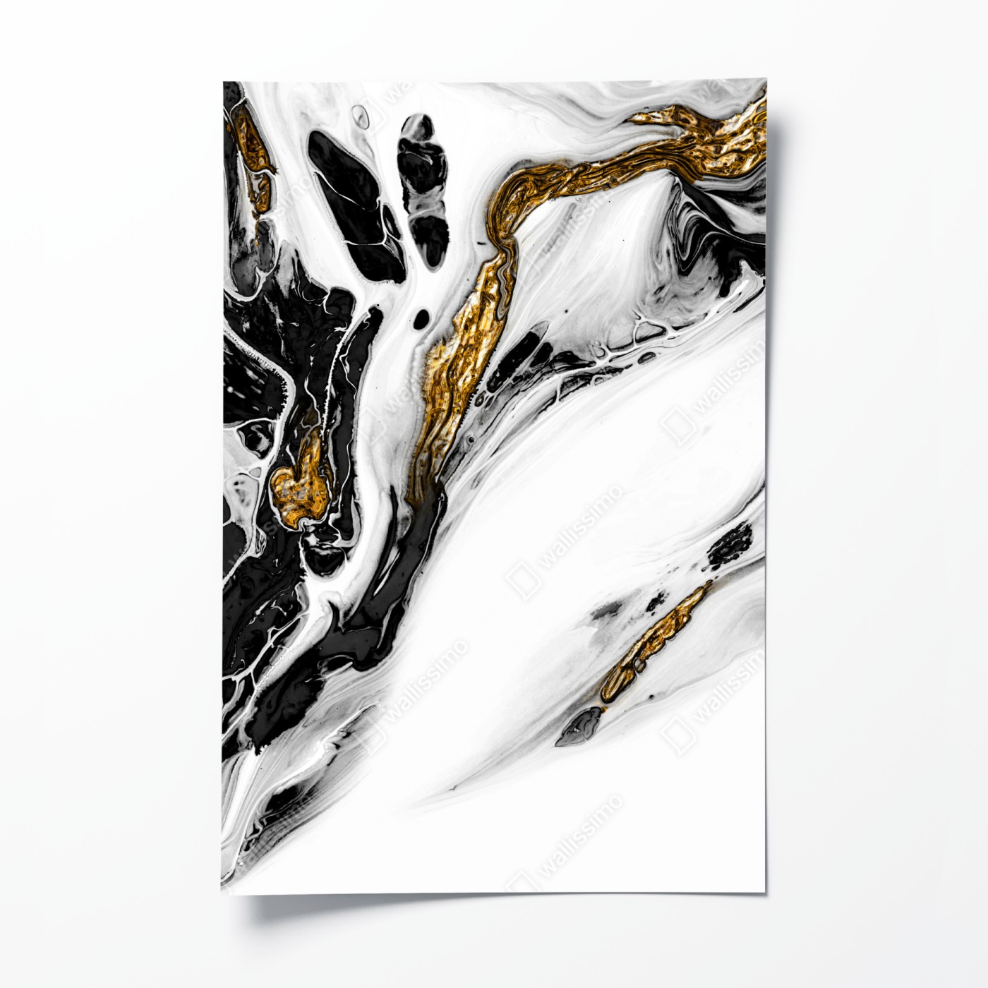 Plakat Czarno-biała abstrakcja ze złotymi żyłami