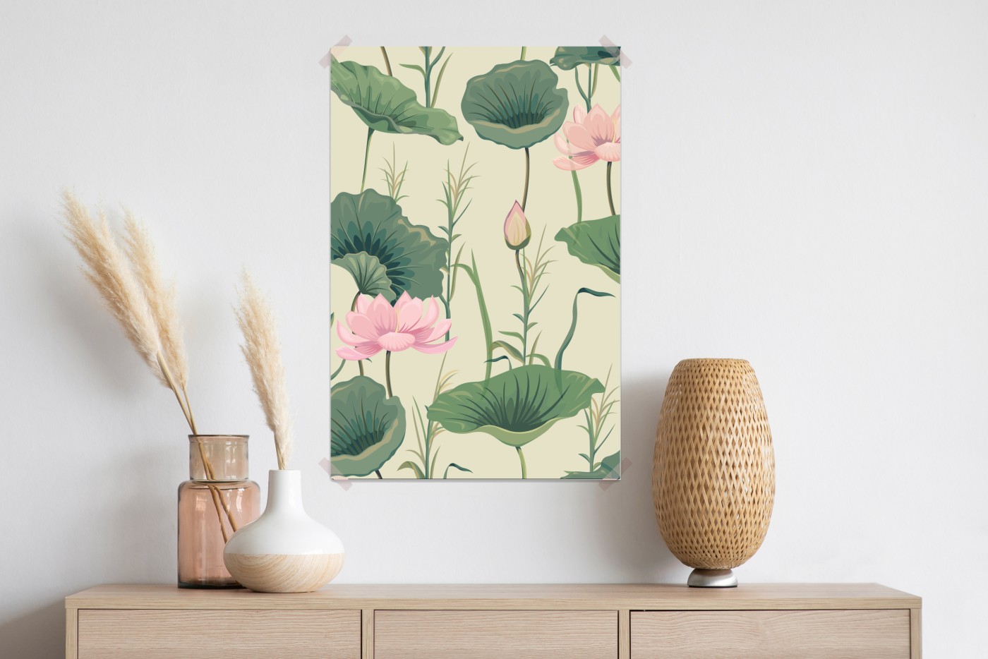 Plakat Delikatny ogród lotosów wzór botaniczny