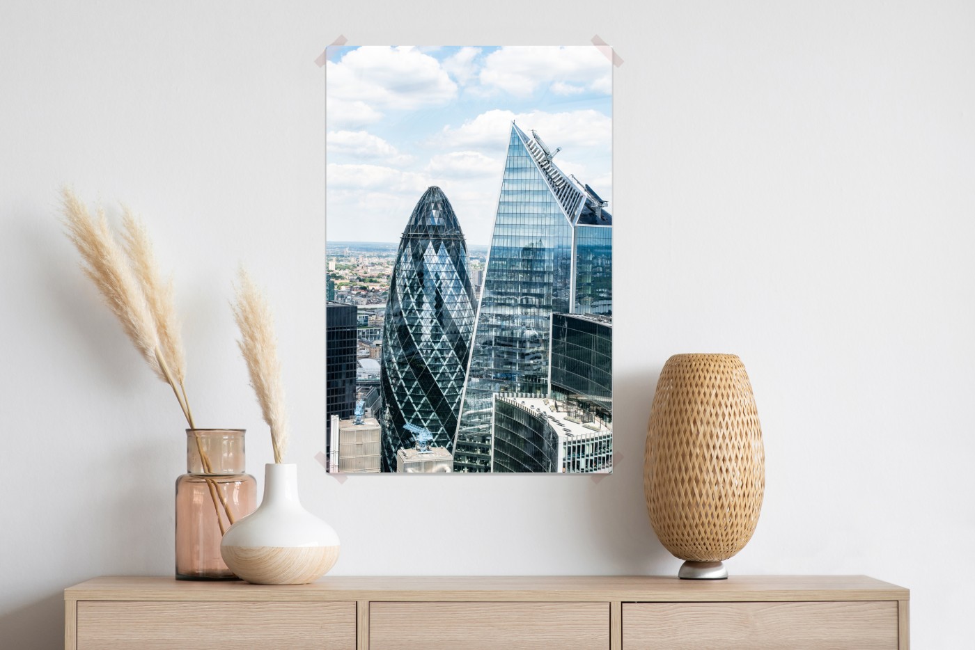 Plakat Nowoczesna panorama Londynu ze szklanymi drapaczami chmur