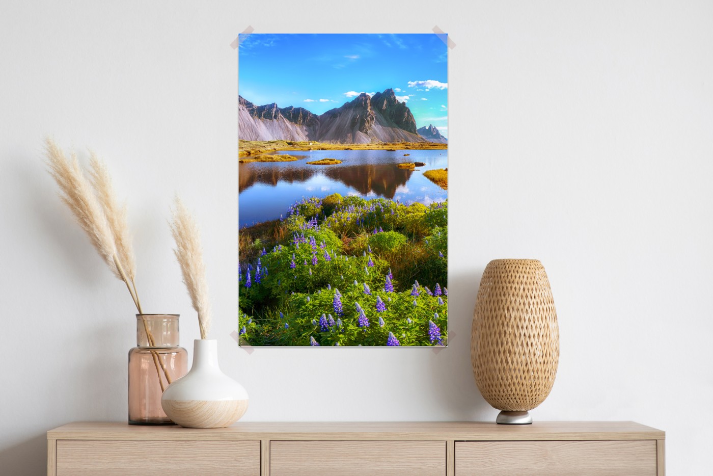 Plakat Żywe łubinowe łąki przy Vestrahorn, Islandia