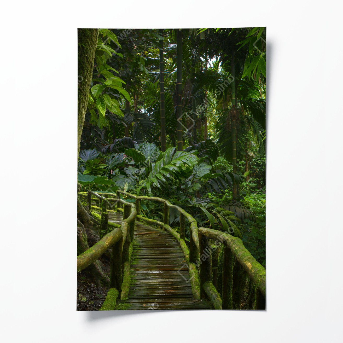 Plakat Spokojna kładka w dżungli przez bujny las deszczowy