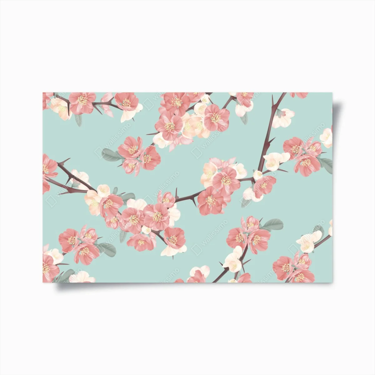 Plakat Pastelowy wzór kwiatów wiśni na miętowym tle