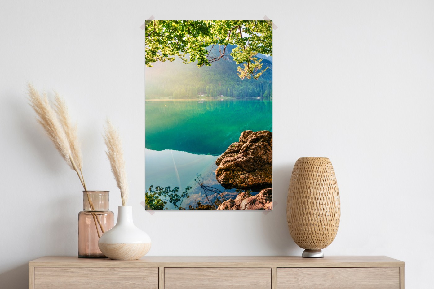 Wprowadź do wnętrza spokój górskich odbić dzięki temu żywemu widokowi na Jezioro Fusine i szczyt Mangart o wschodzie słońca.WięcejMniej