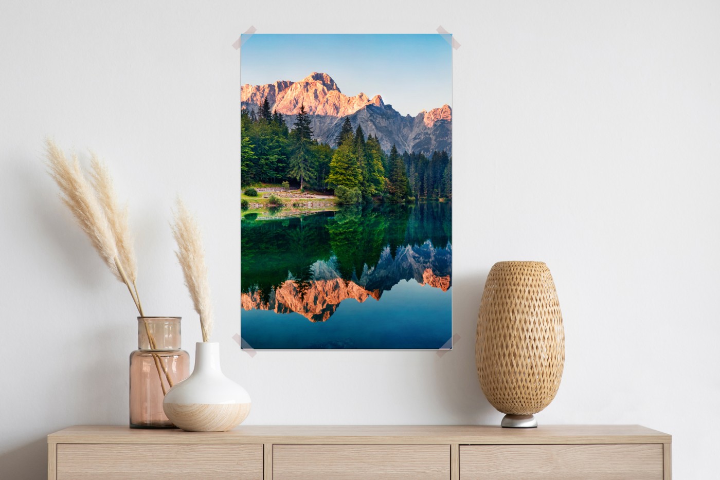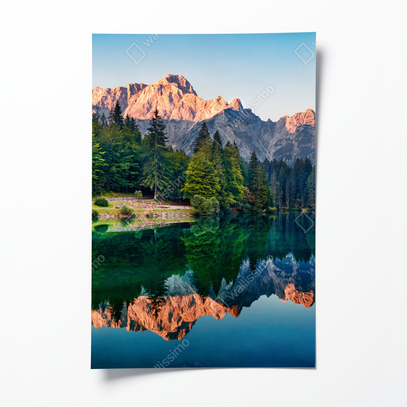 Plakat Spokojny poranek nad jeziorem Fusine, Alpy Julijskie