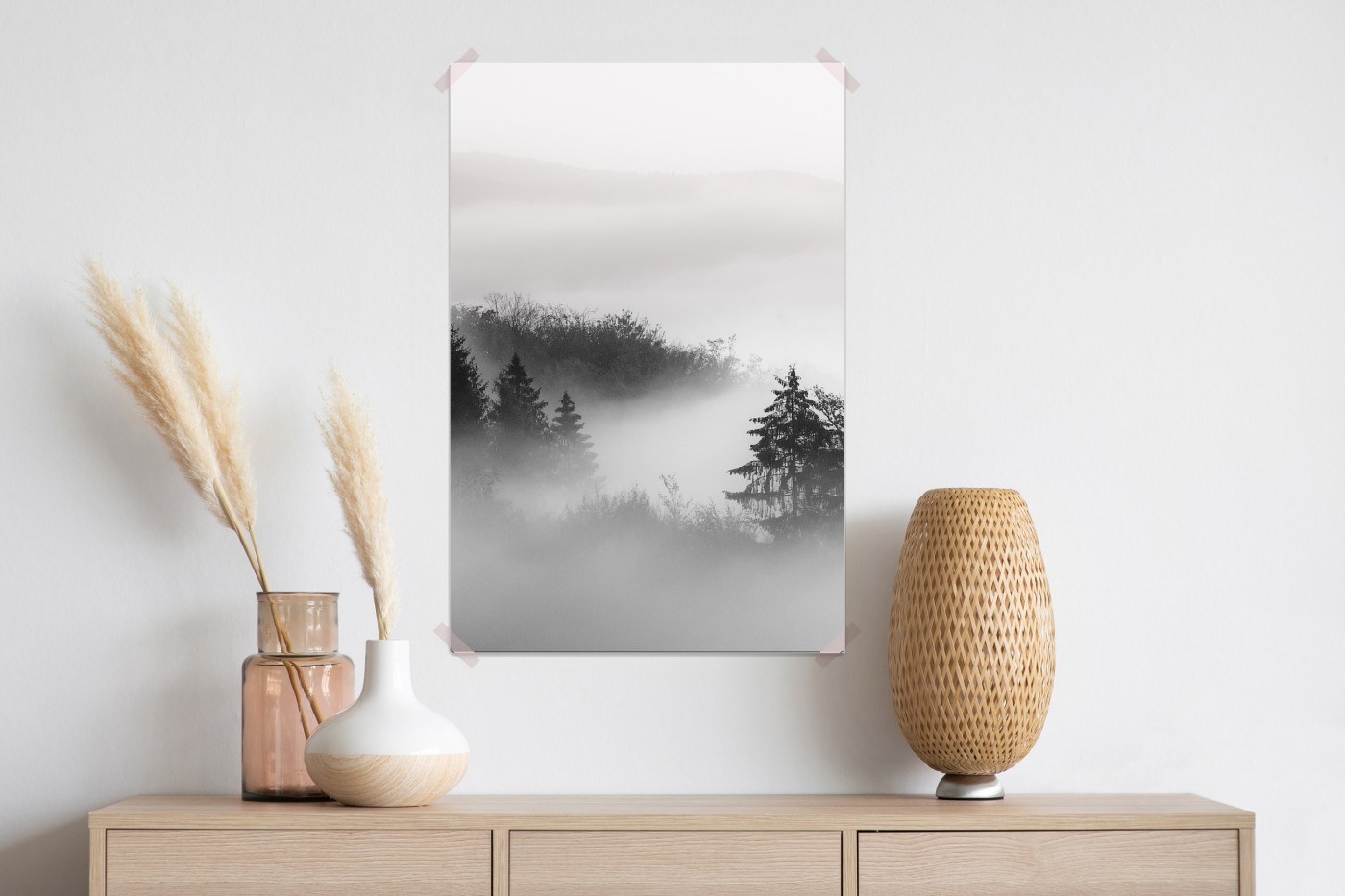 Plakat Mglisty las w odcieniach szarości