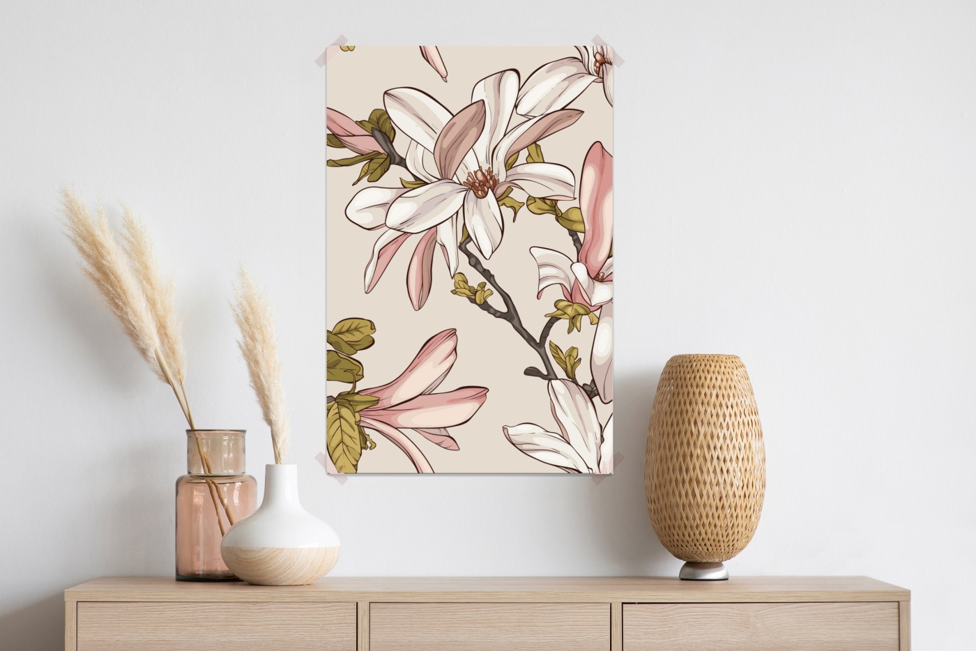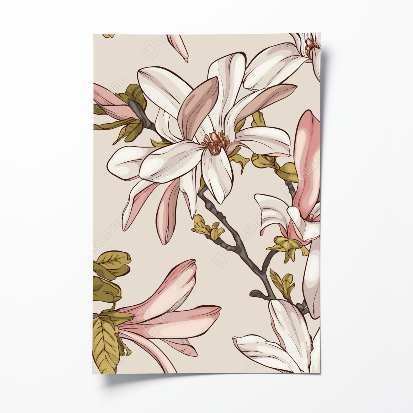 Plakat pastelowe magnolie na beżowym tle – Wallissimo®