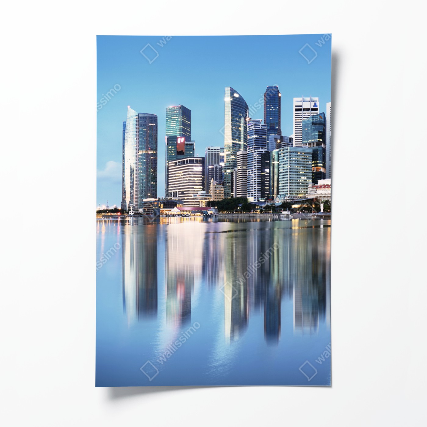 Plakat nowoczesna panorama miasta odbita w wodzie – Wallissimo®