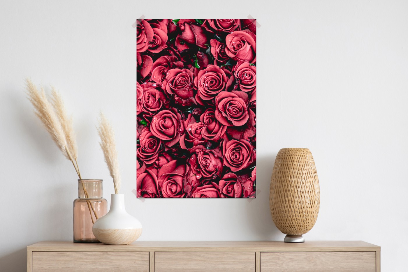 Plakat Gęste czerwone róże dekoracja ścienna