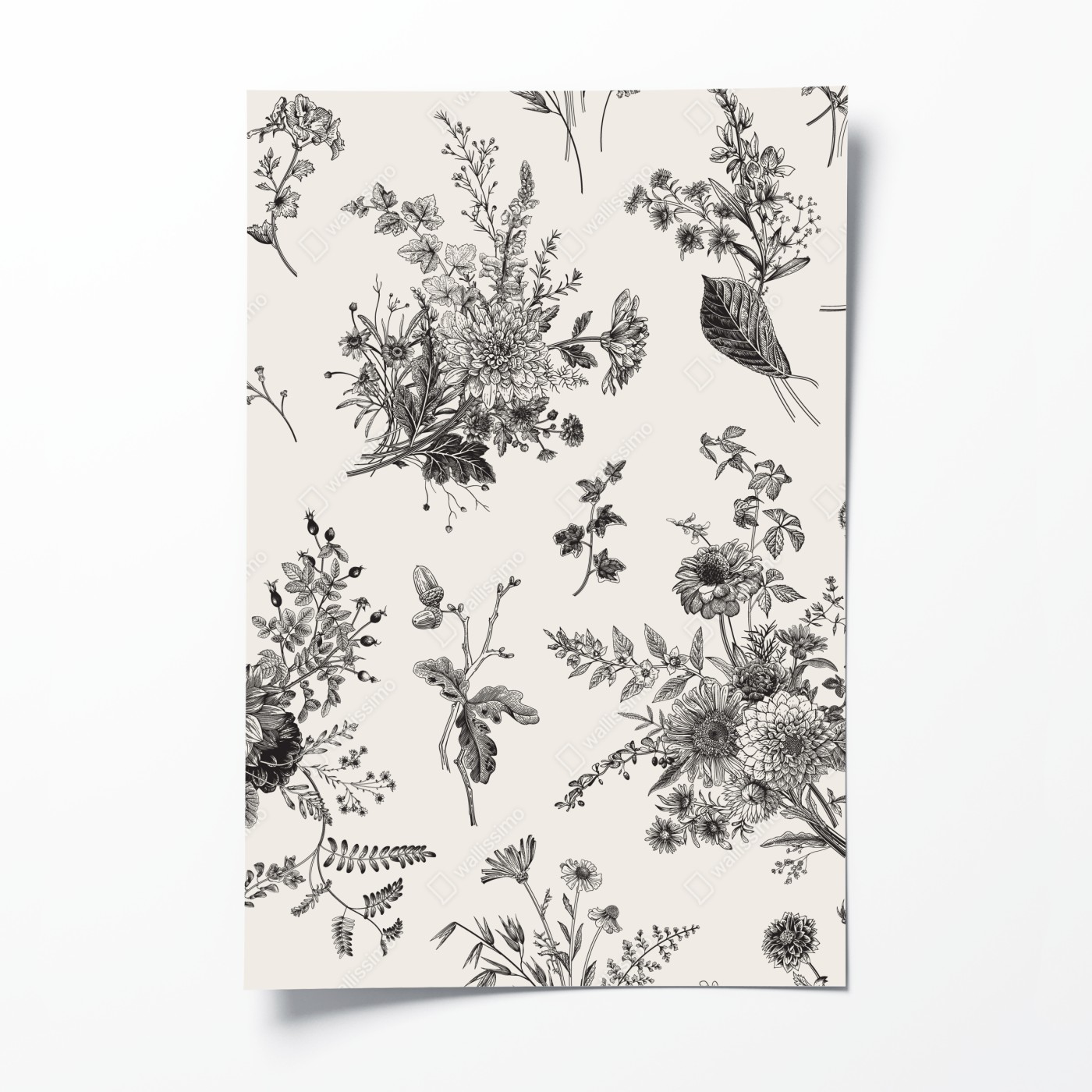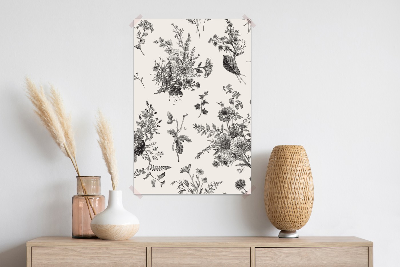 Plakat Klasyczny czarno-biały wzór kwiatowy