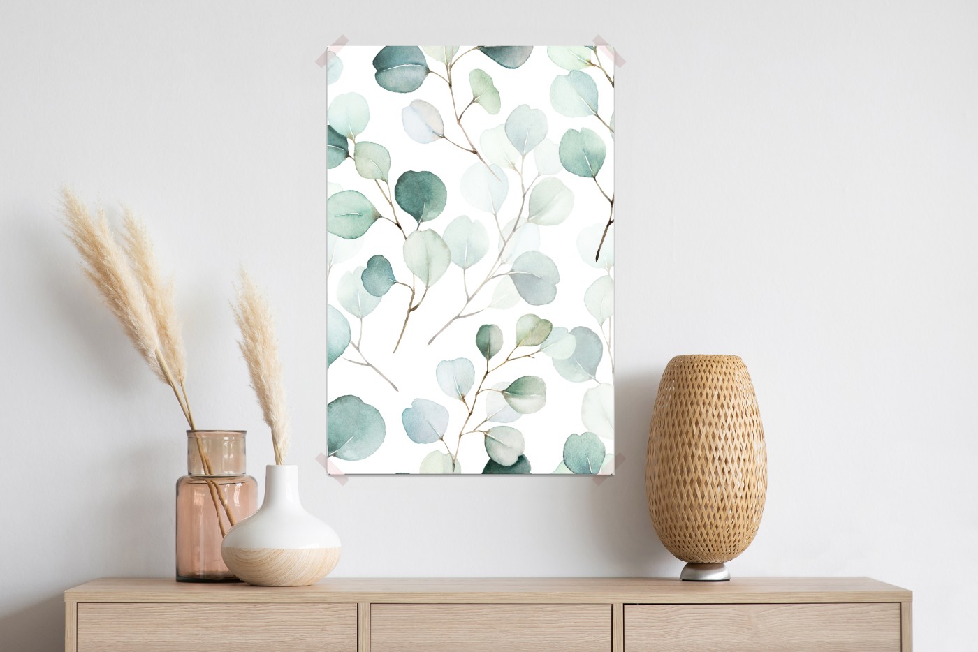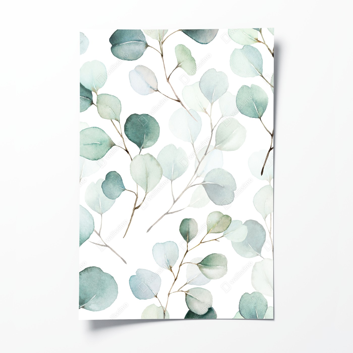 Plakat Delikatny wzór liści eukaliptusa w akwareli