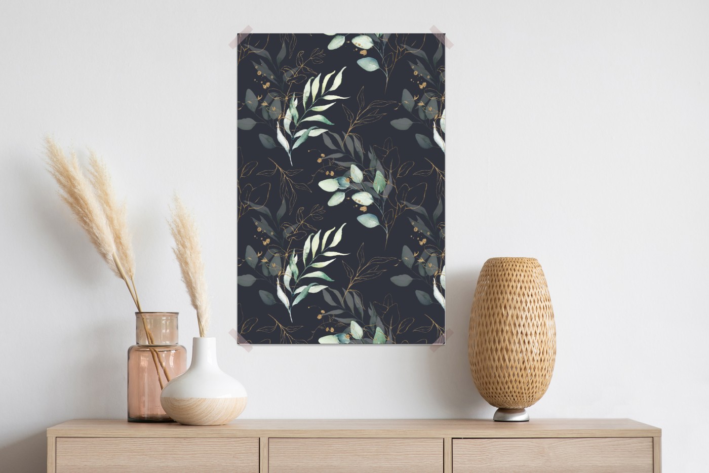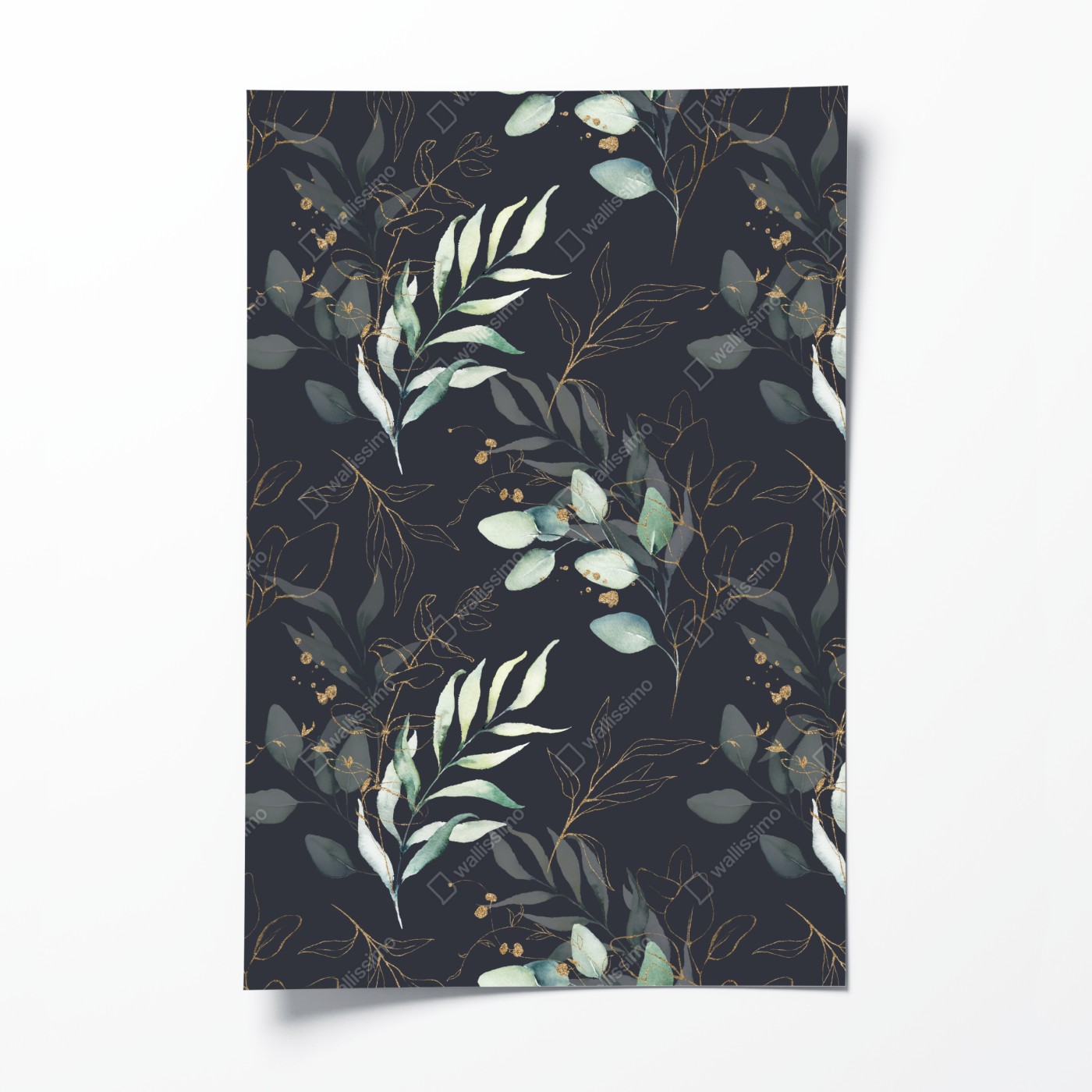Plakat Akwarelowe liście eukaliptusa na ciemnym tle
