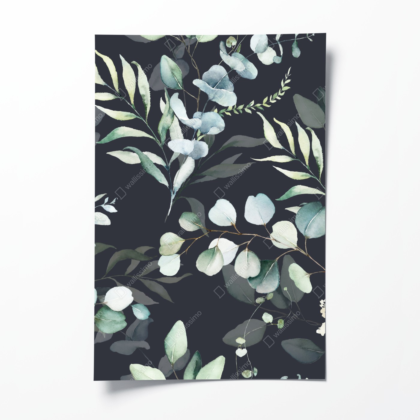 Plakat wzór botaniczny eukaliptusa w akwareli na ciemnym tle – Wallissimo®