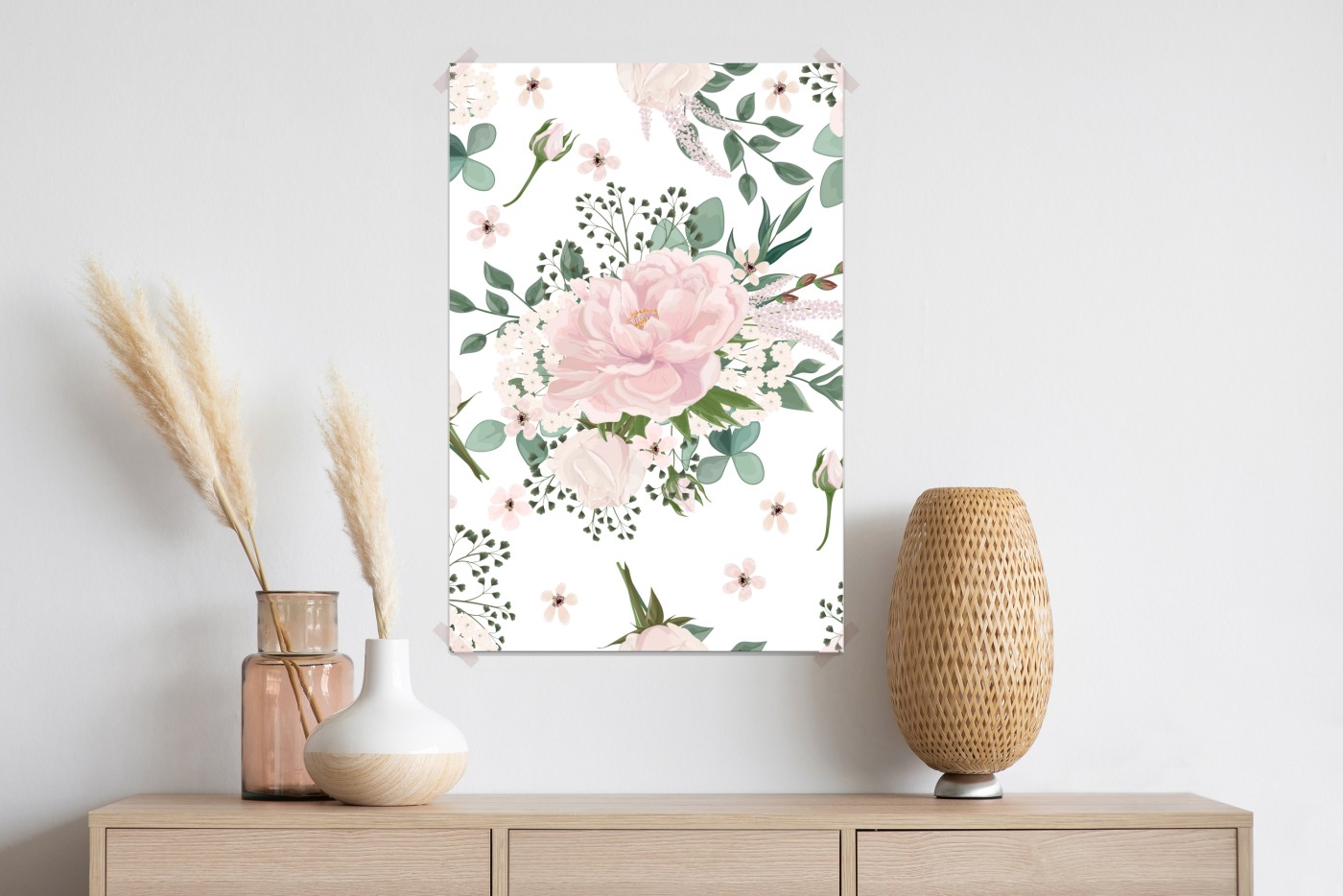 Plakat delikatny różowy wzór peonii – Wallissimo®