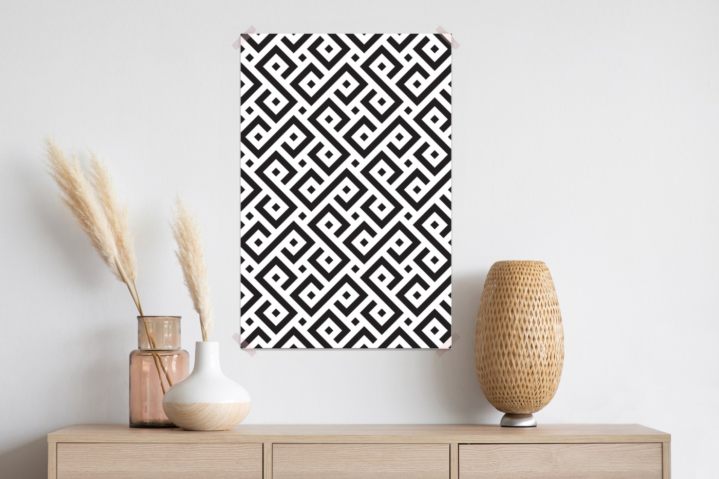 Plakat Ponadczasowy czarno-biały geometryczny wzór