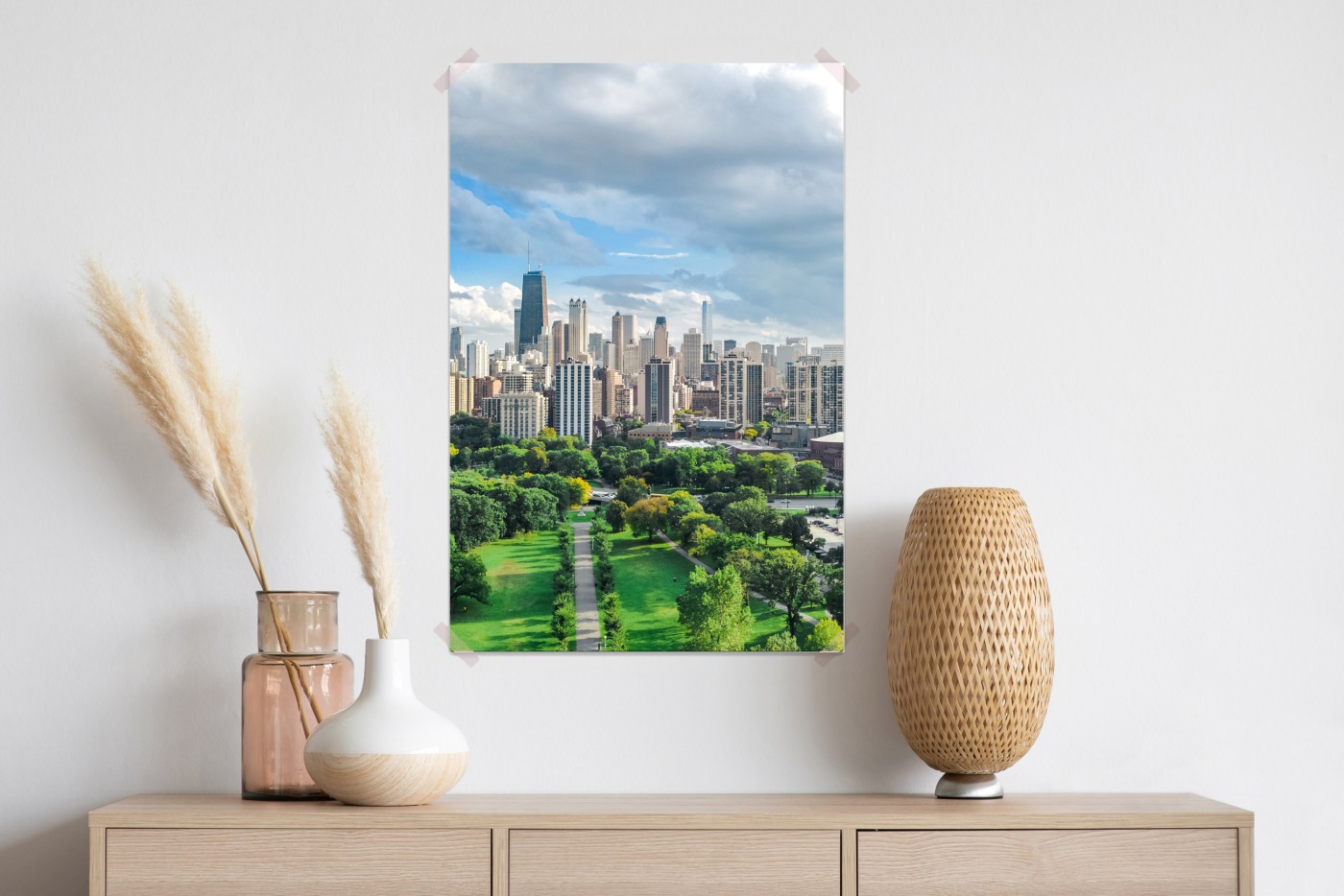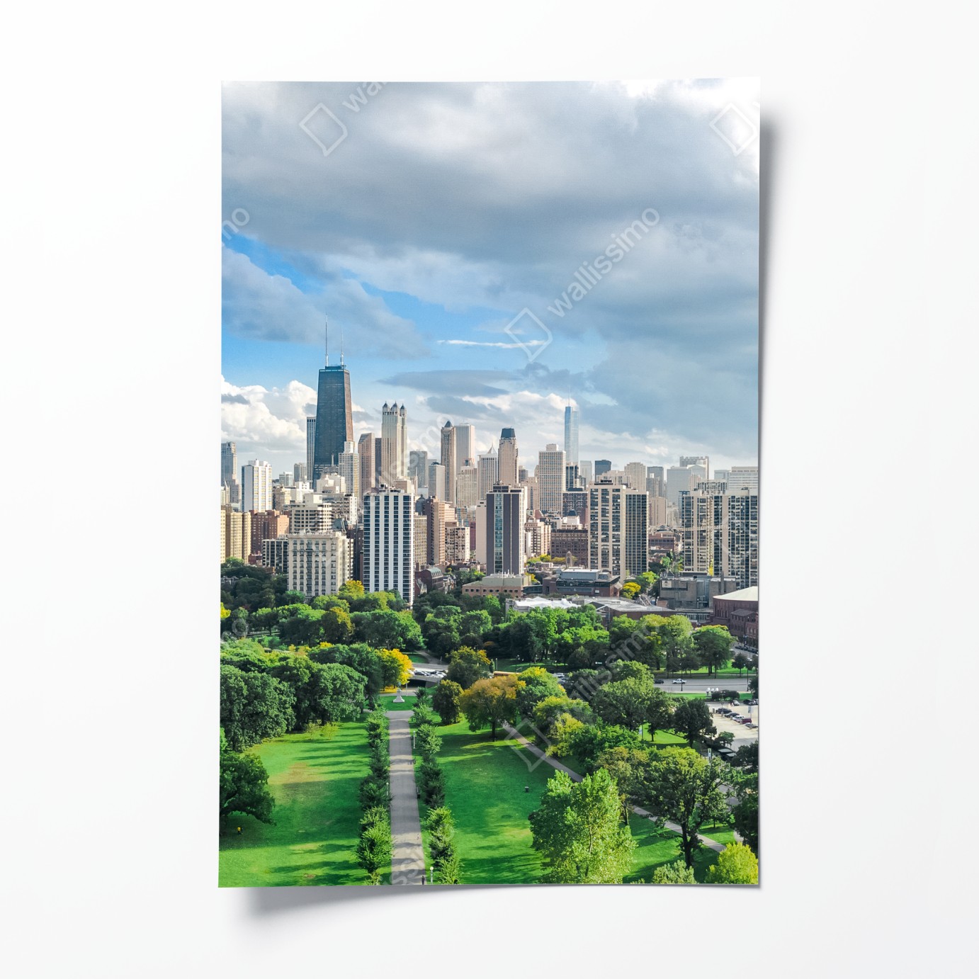 Plakat miejska panorama nad zielonym parkiem – Wallissimo®