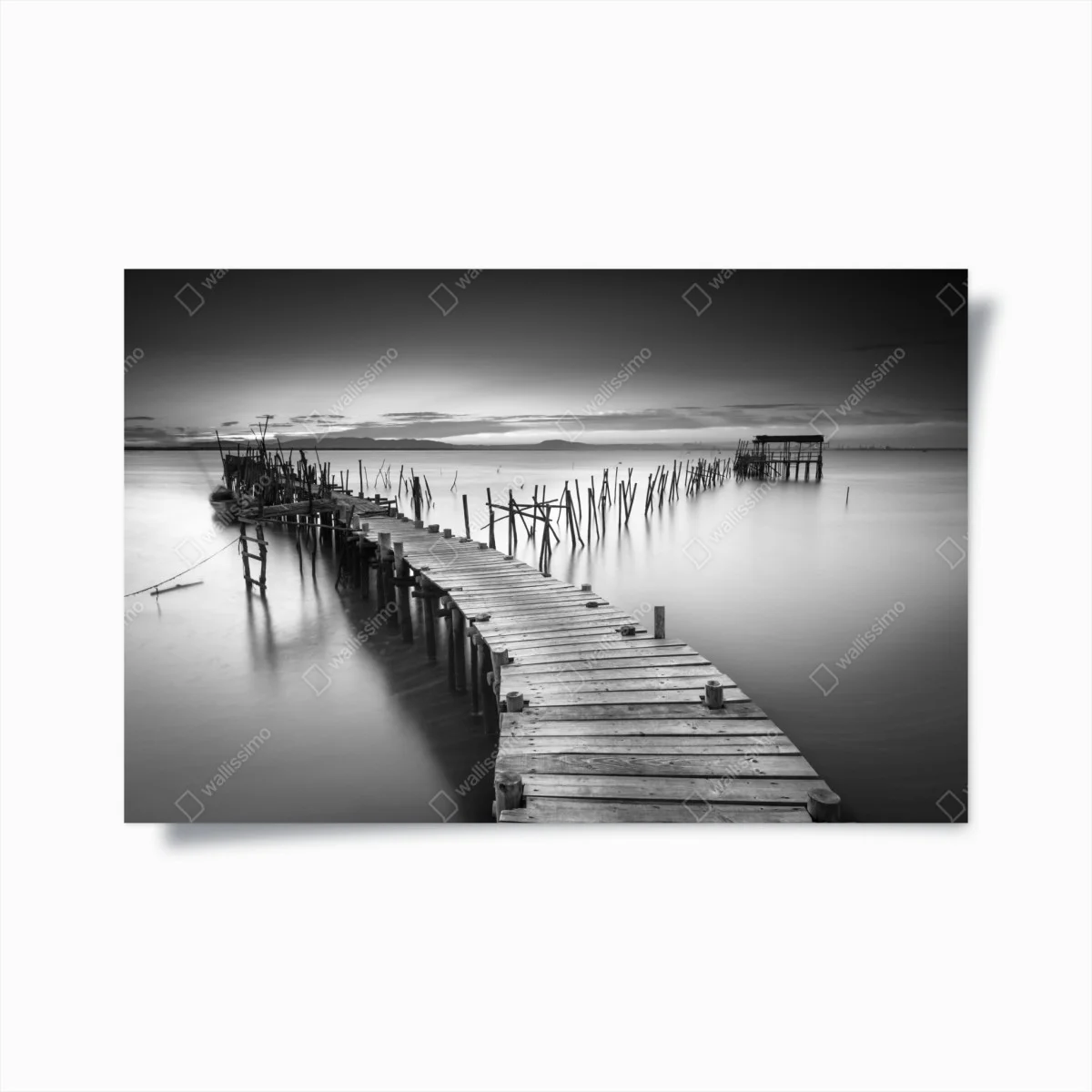- spokojny, minimalistyczny, czarno-białe, pejzaż, woda, morze, molo, długi czas naświetlania, drewniany pomost, monochromatyczne