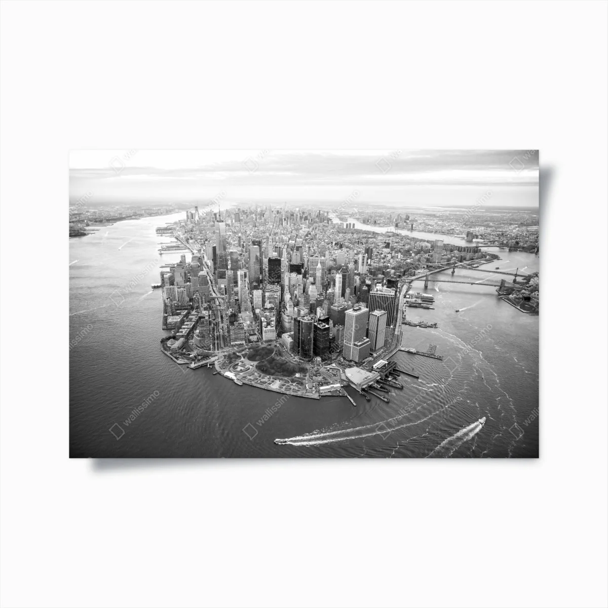 - manhattan, nowy jork, panorama miasta, drapacze chmur, czarno-białe, widok z lotu ptaka, linia horyzontu, nabrzeże, centrum, miejskie