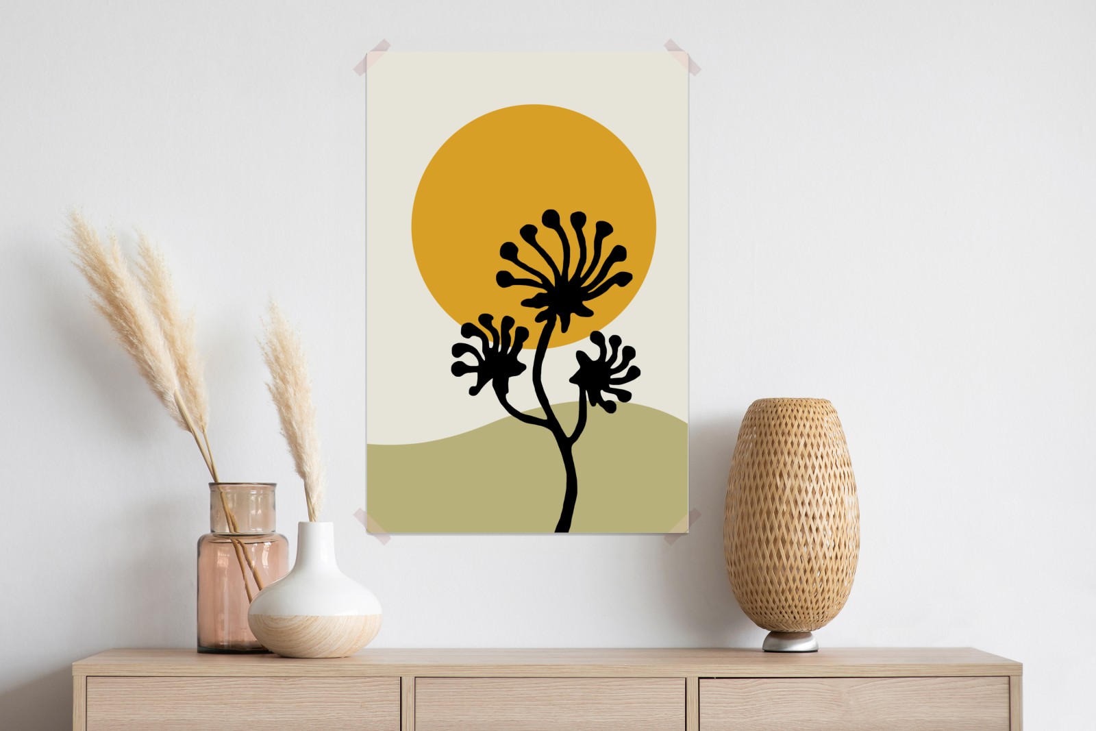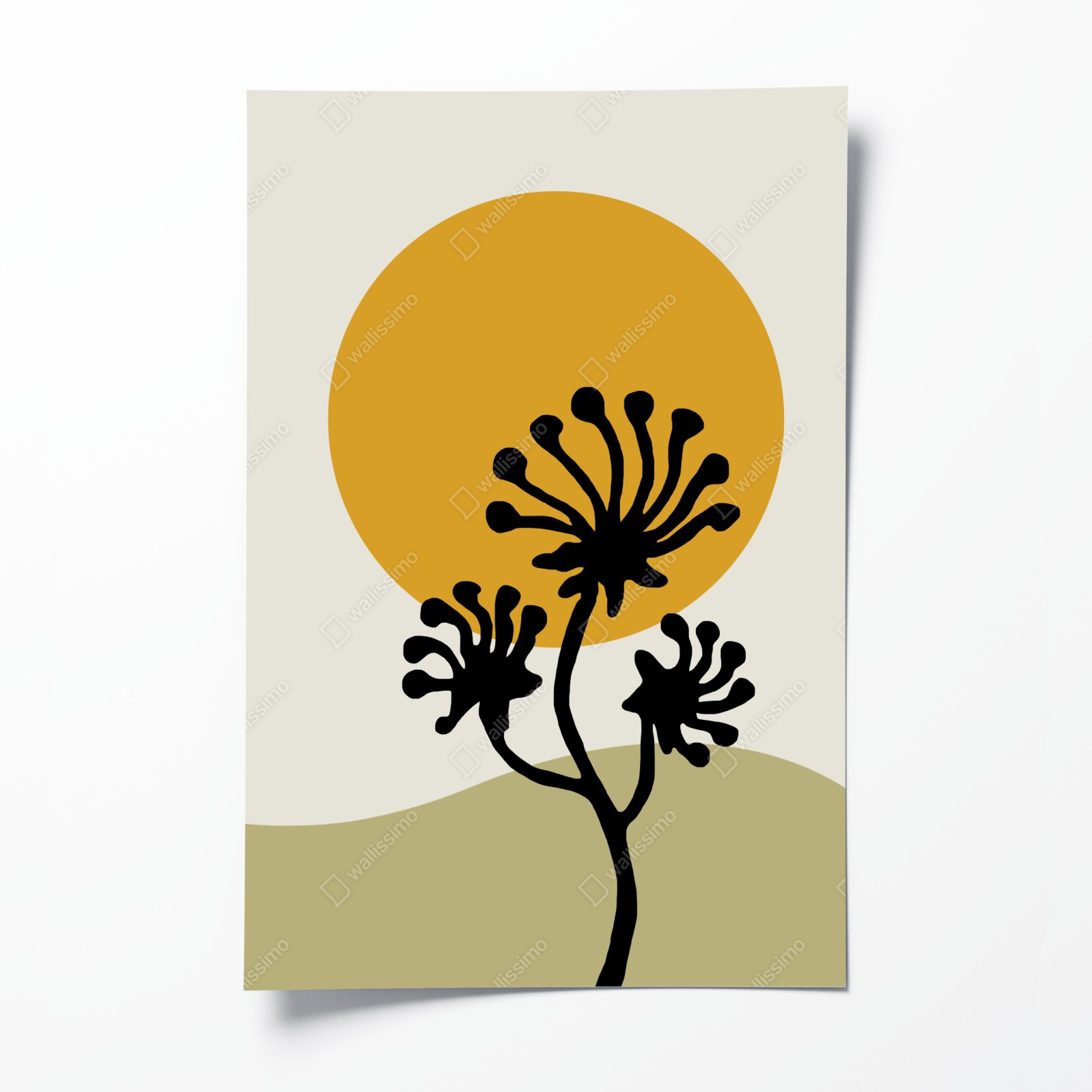 Plakat Minimalistyczna botaniczna sylwetka ze słońcem