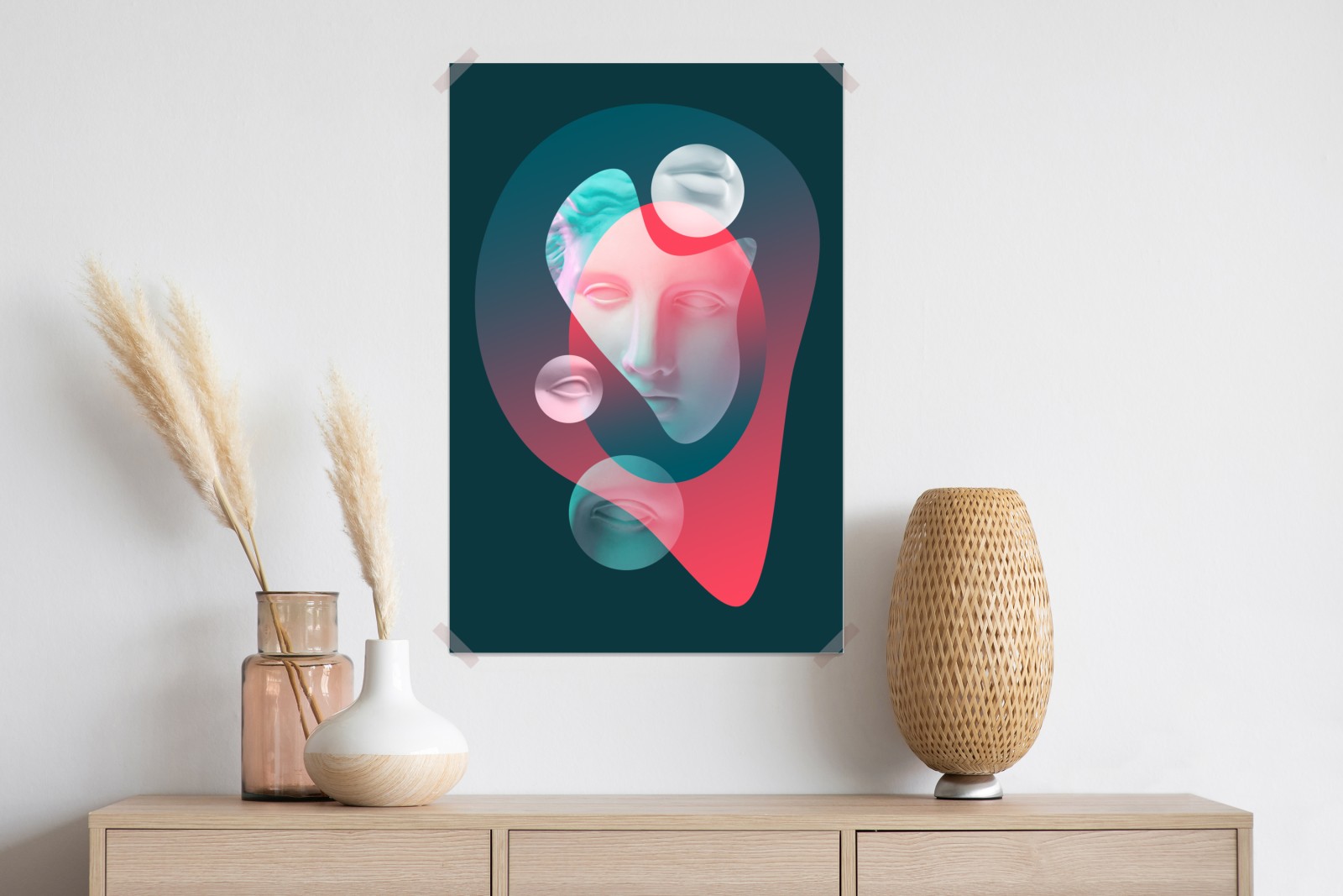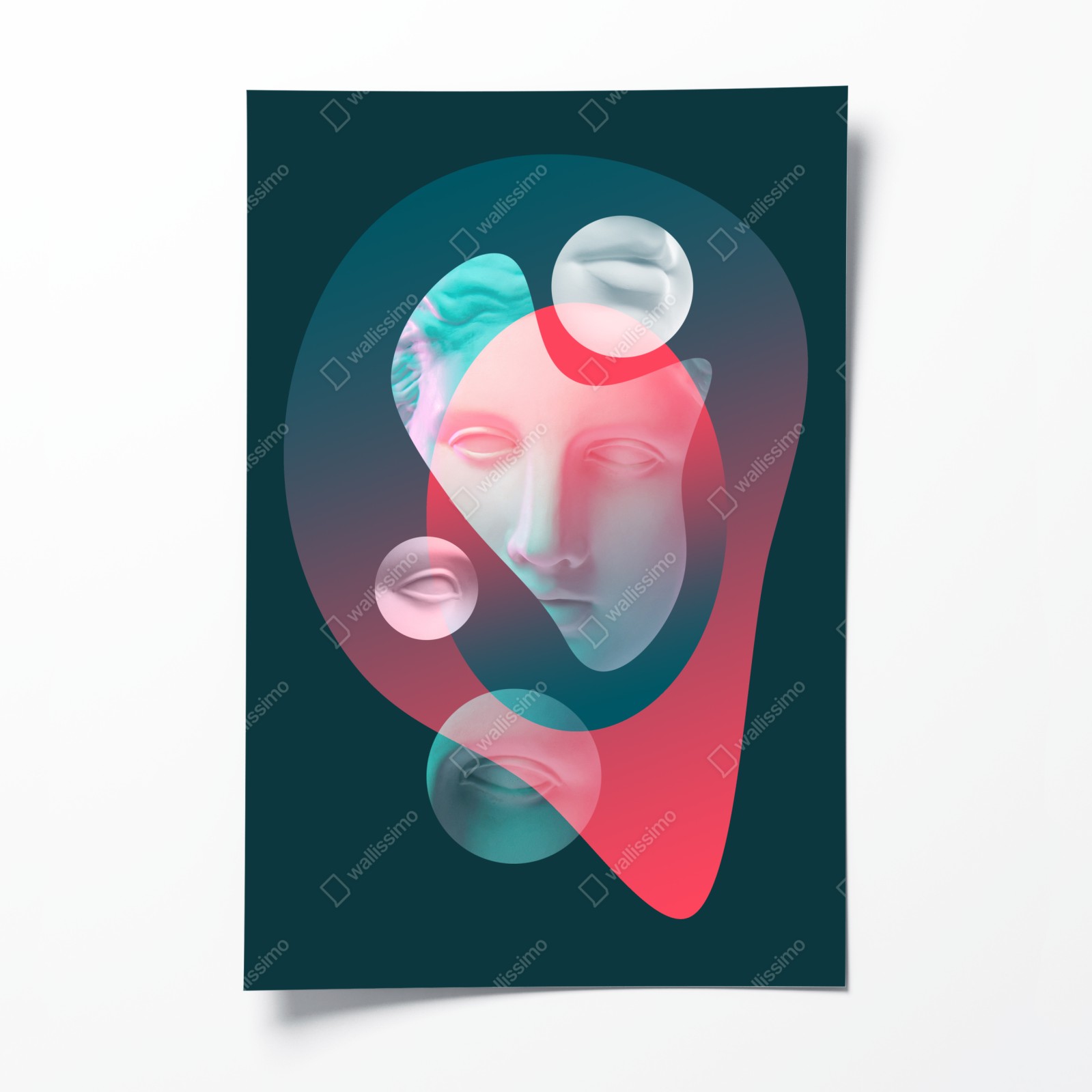 Plakat Surrealistyczna klasyczna twarz w duotonie