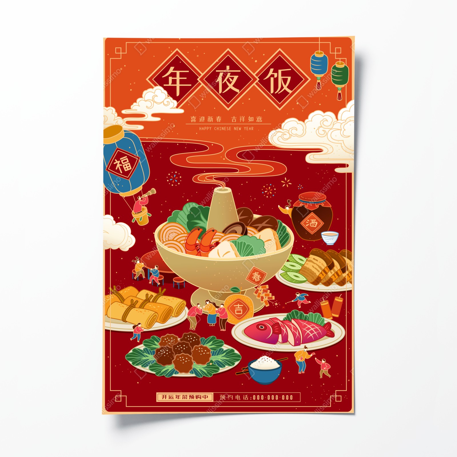 Plakat Ilustracja kolacji z okazji Chińskiego Nowego Roku