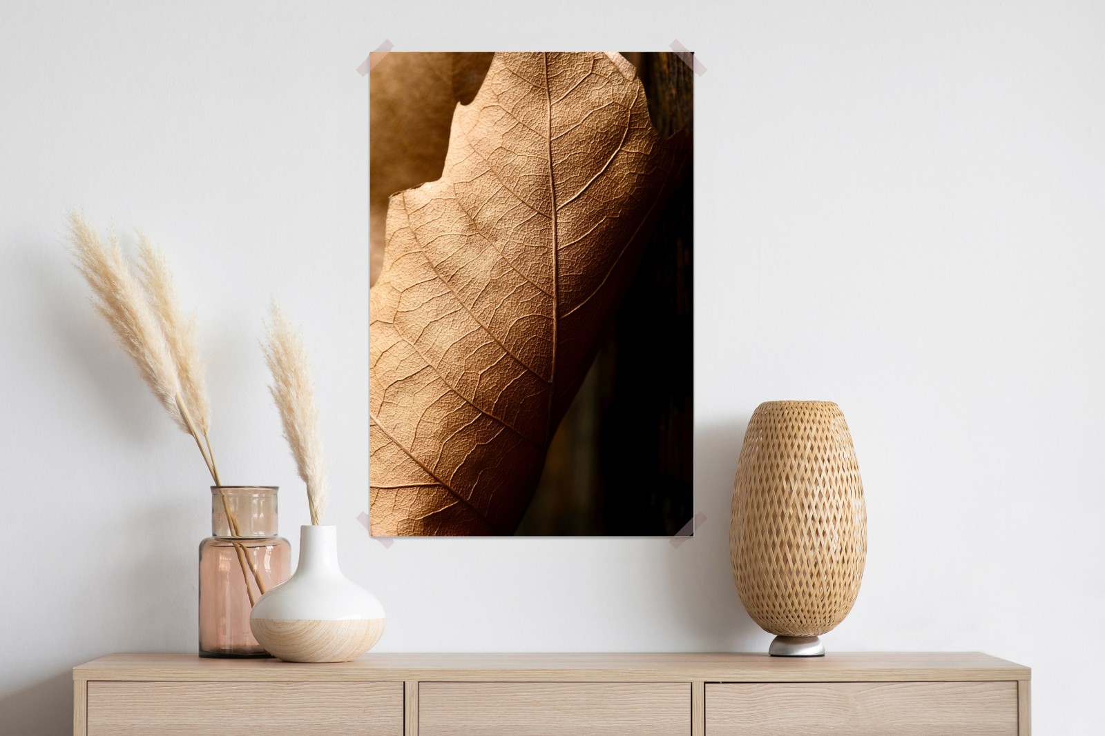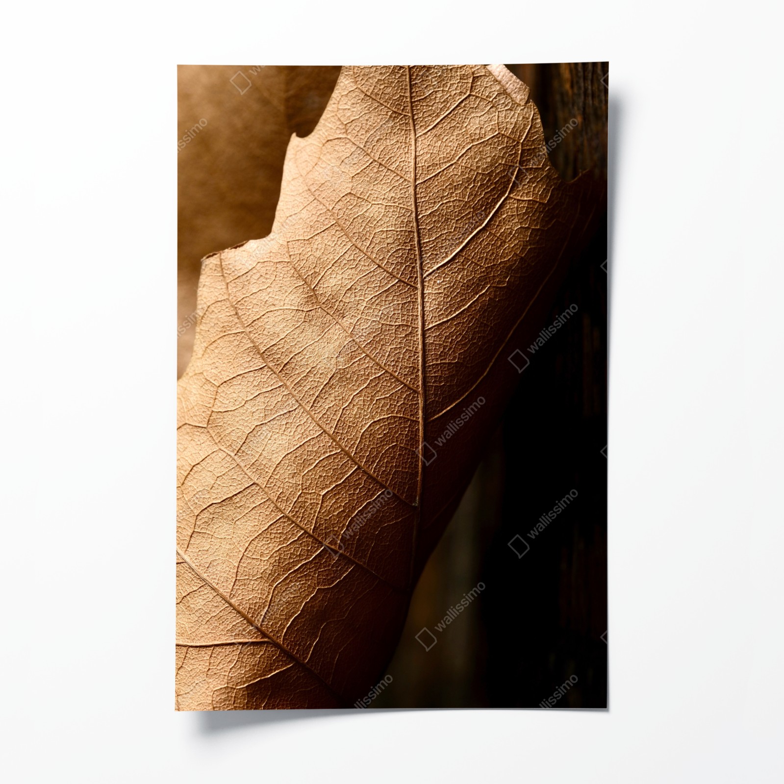 Dodaj naturalną fakturę i ciepło do wnętrza dzięki szczegółowemu zbliżeniu suchego liścia. Idealne do salonu lub biura.