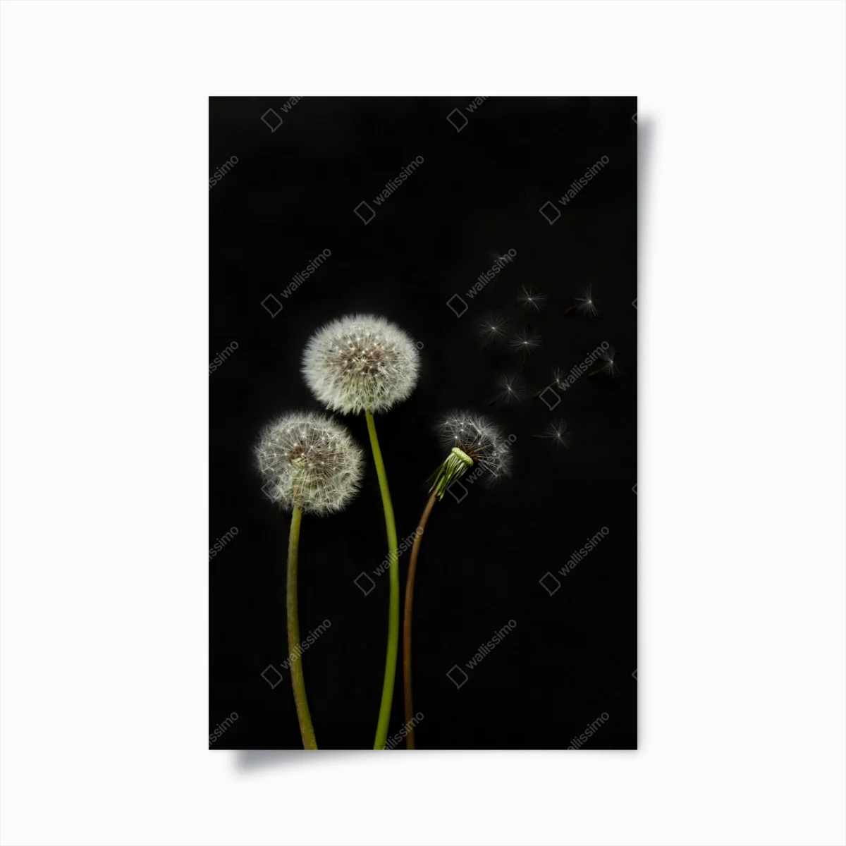 Plakat Delikatne główki mniszka na czarnym tle