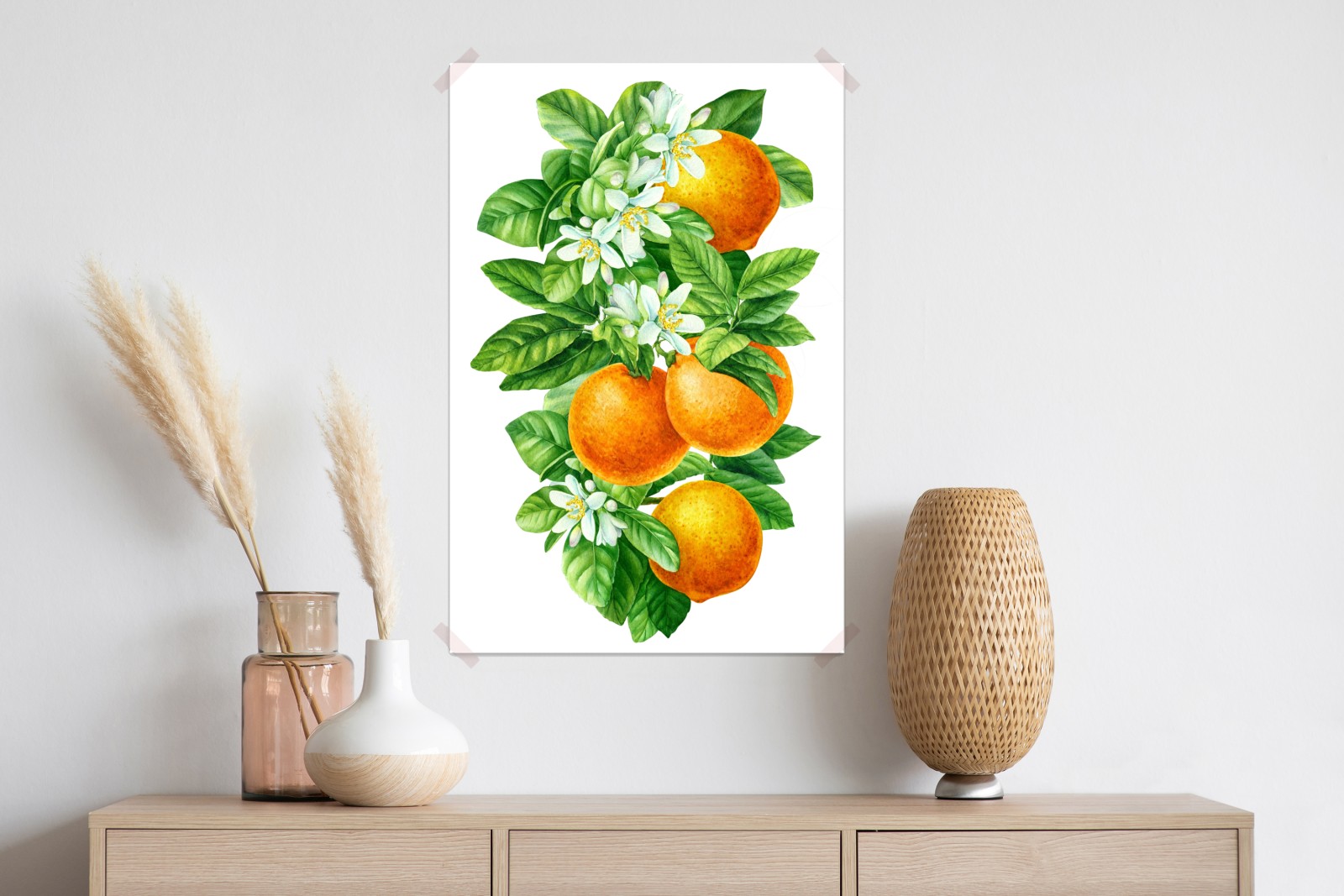 Plakat kwiaty cytrusów i dojrzałe pomarańcze – Wallissimo®