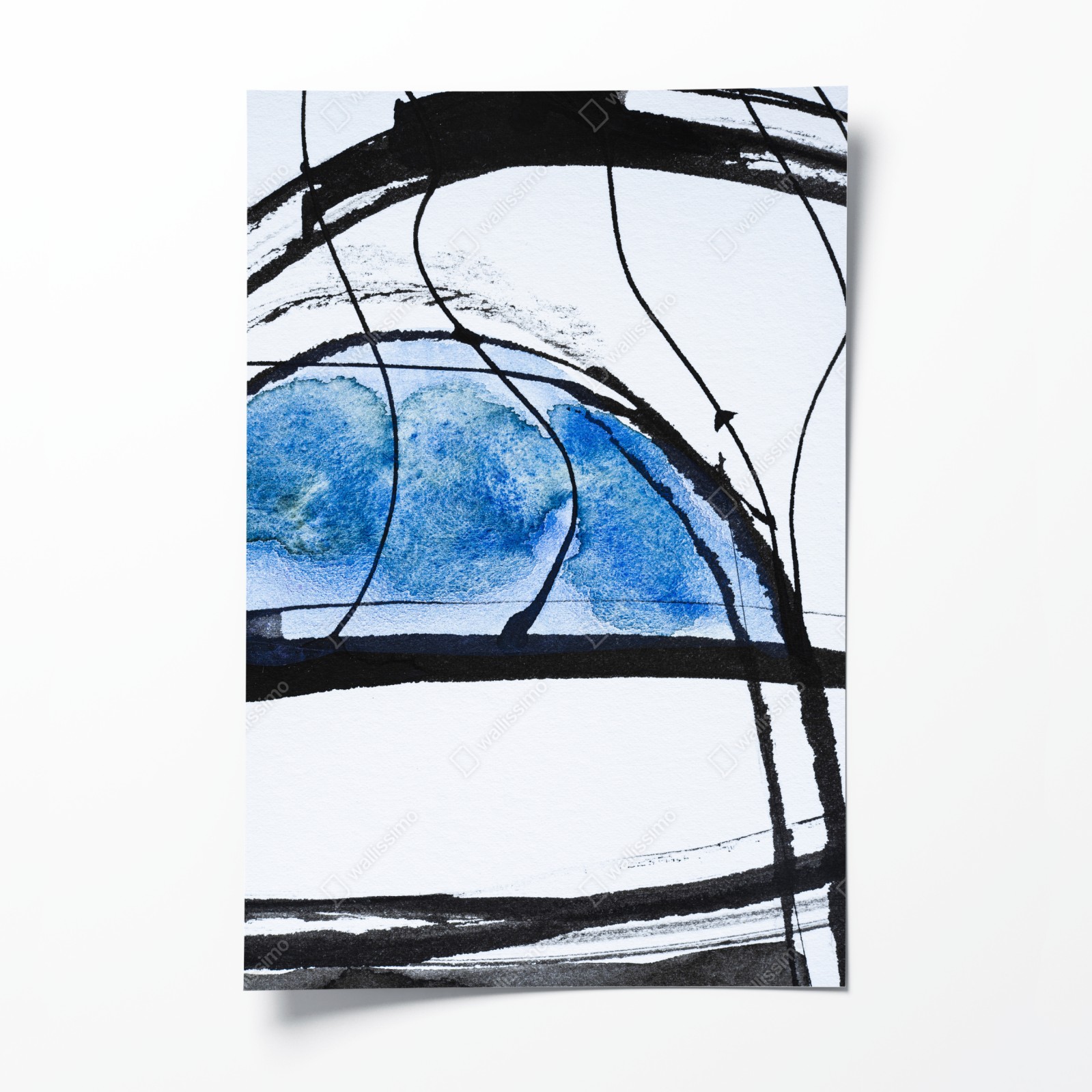 Plakat Niebieska abstrakcja tuszem i akwarelą
