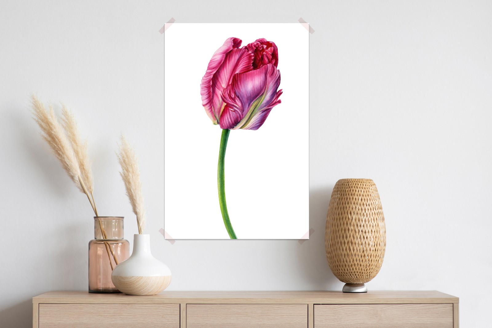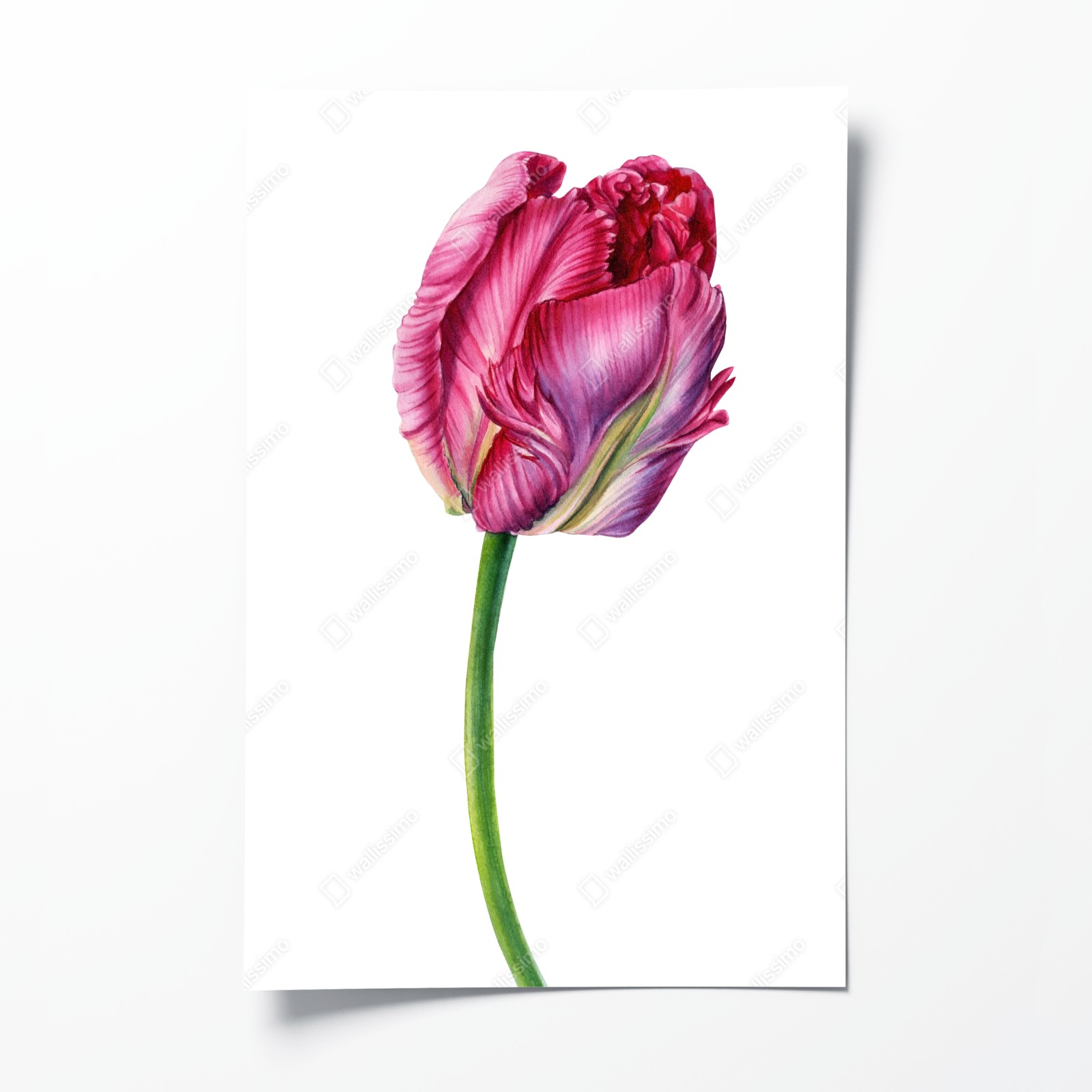 Plakat różowy tulipan akwarelowa ilustracja botaniczna – Wallissimo®
