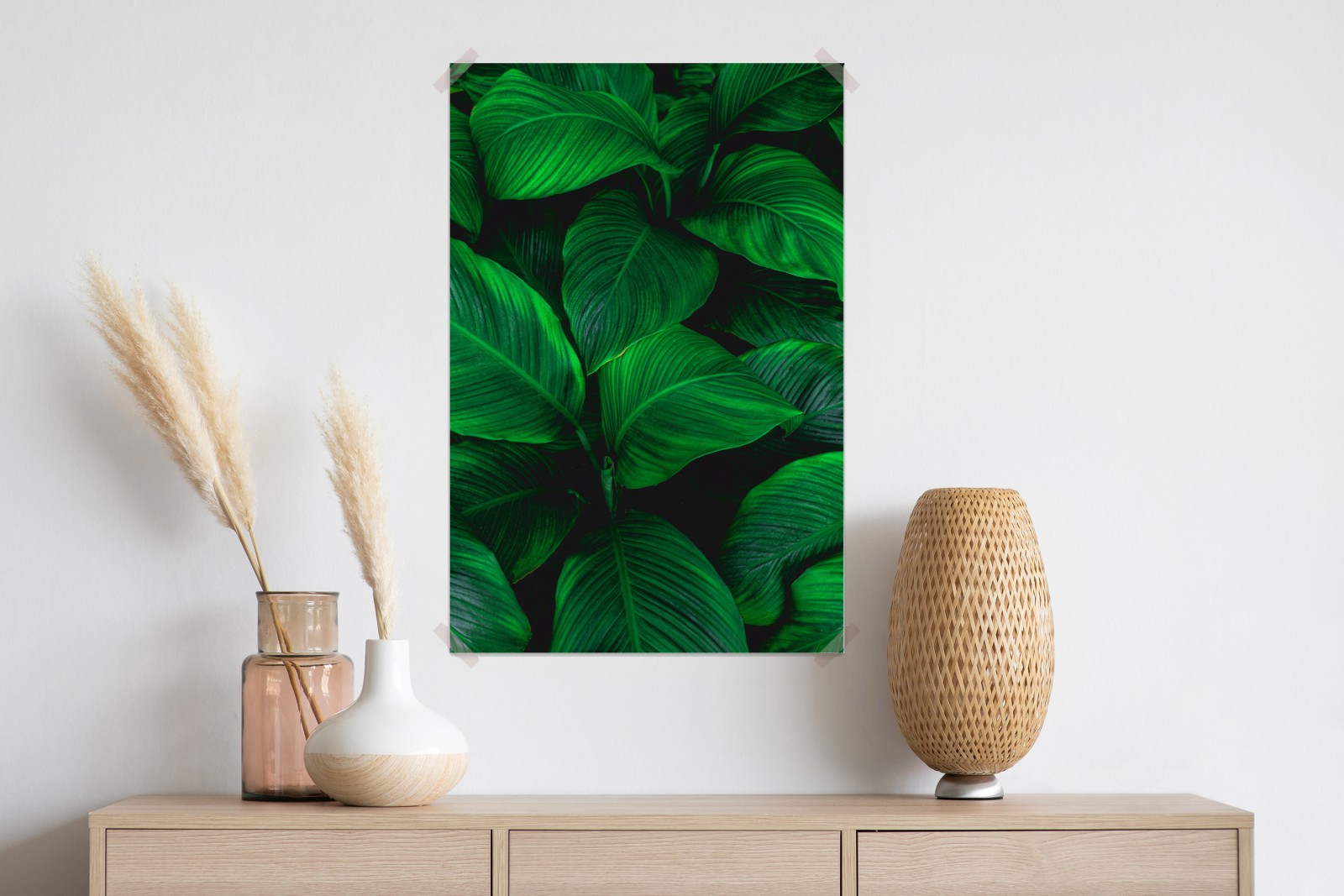 Dodaj do wnętrza tropikalną świeżość dzięki temu zbliżeniu liści, które wprowadza bujną zieleń i naturalną teksturę.