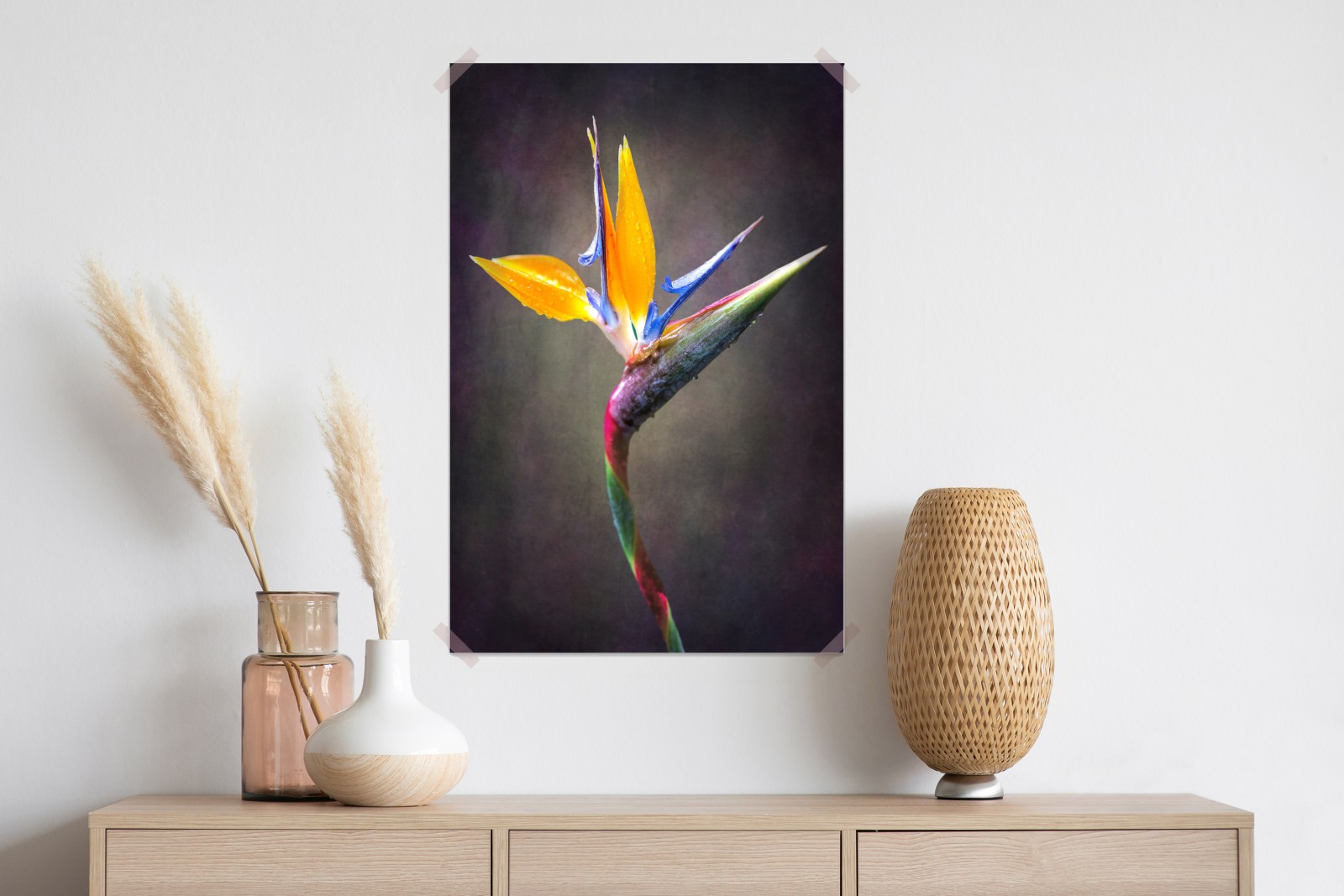 Żywe zbliżenie strelicji wnosi tropikalną energię i elegancję do wnętrza, idealne do ozdoby ścian w salonie.