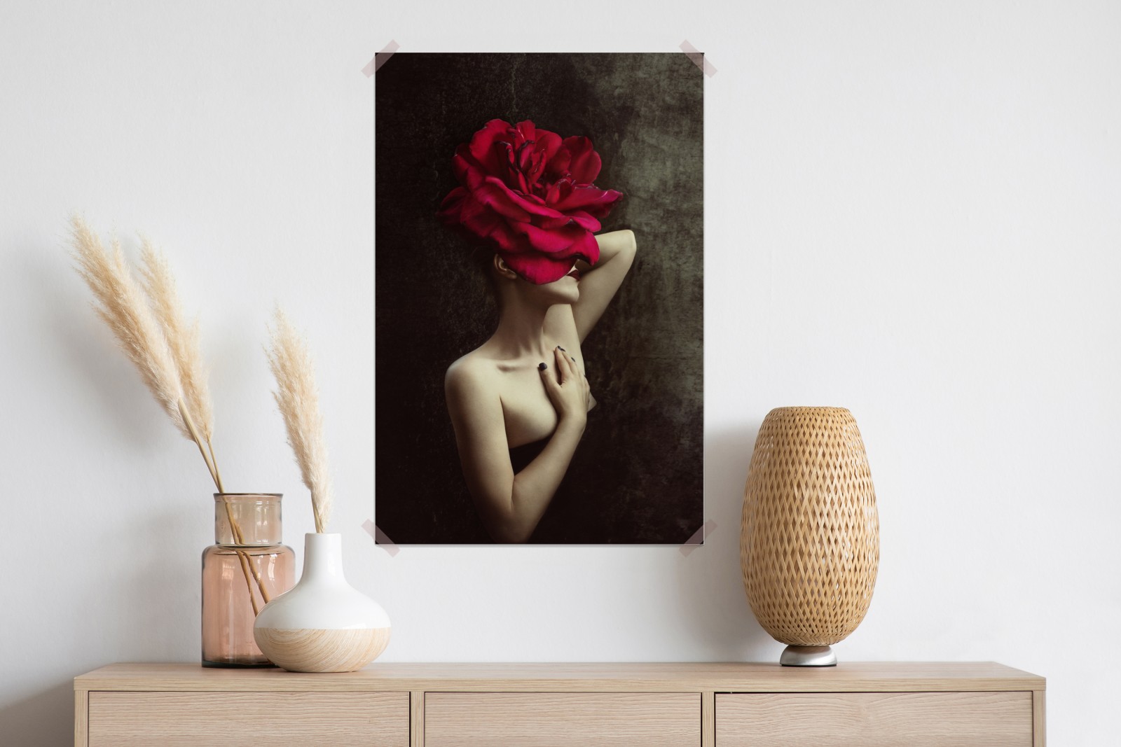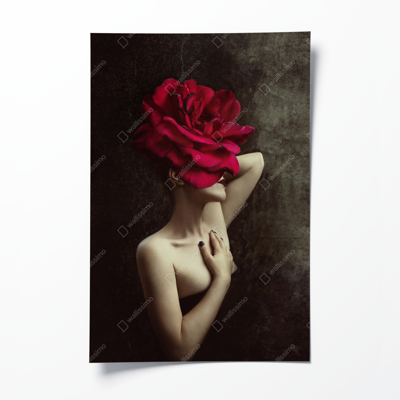 Plakat Kobieta z głową z róży surrealistyczny portret