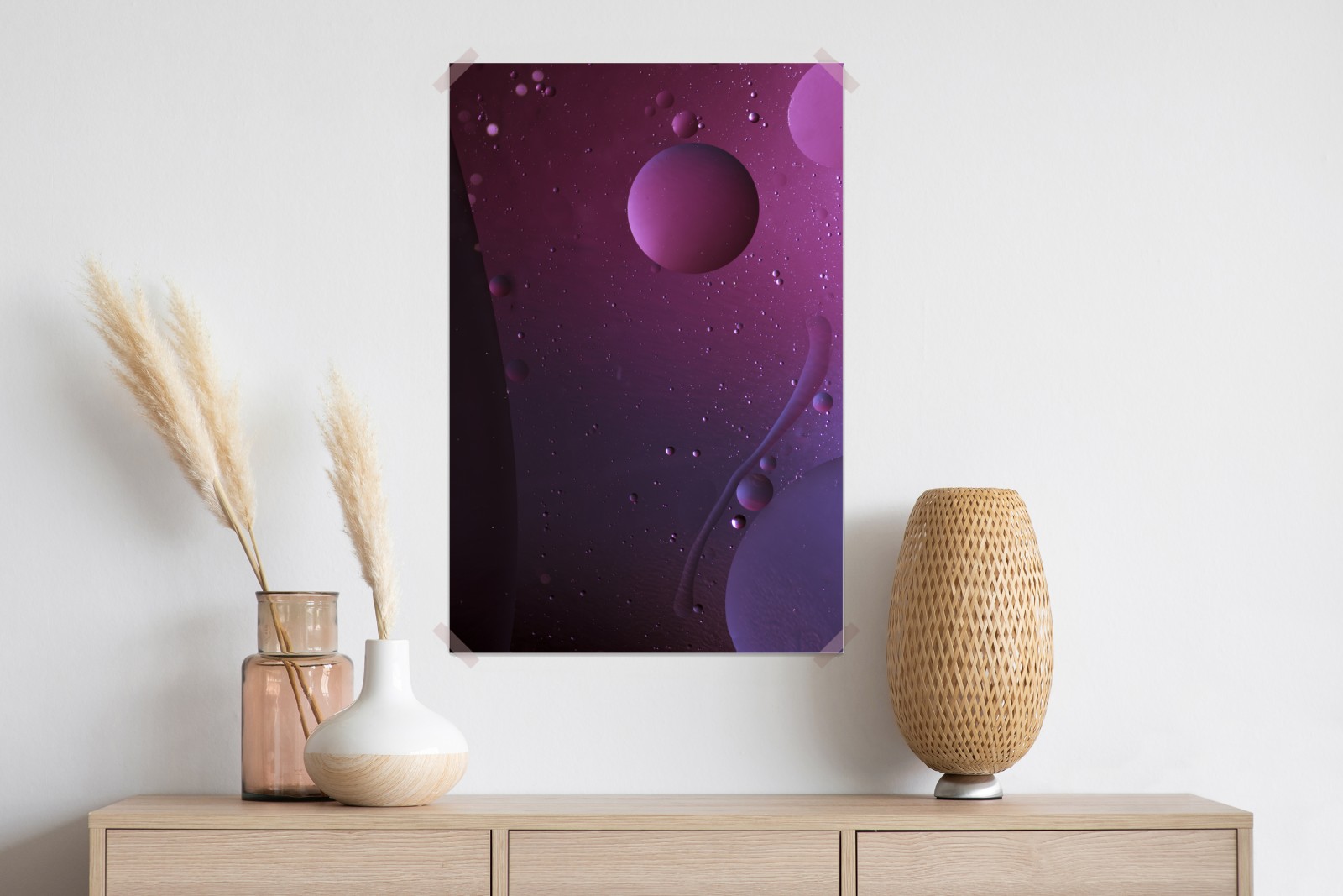 Dodaj nutę nowoczesnej tajemnicy do wnętrza dzięki wirującym fioletowym sferom i kosmicznym fakturom, idealne do współczesnych aranżacji.