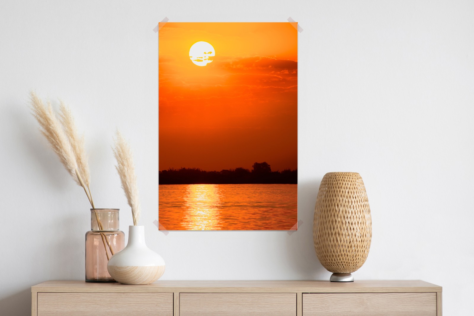 Plakat Złoty zachód słońca nad spokojnym jeziorem