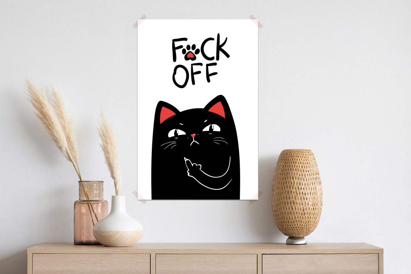 Dodaj odważny akcent do swojego wnętrza dzięki tej zabawnej ilustracji czarnego kota, która wnosi nowoczesny i prześmiewczy charakter.